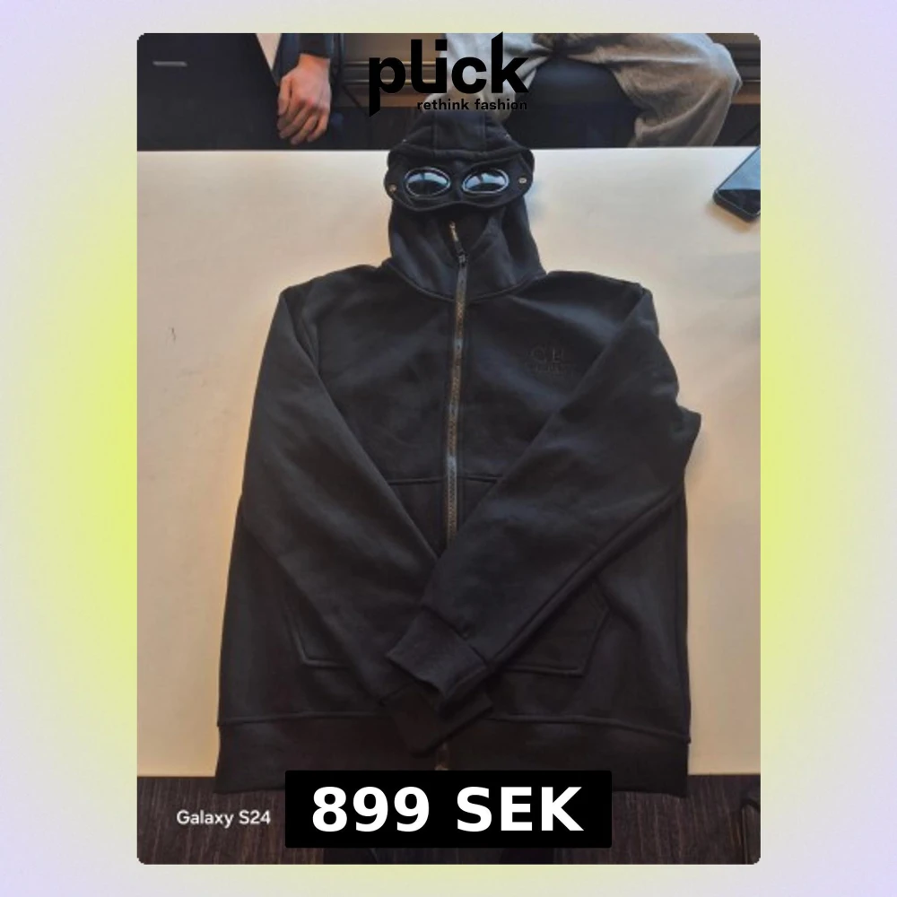 Svart gogglejacka från C.P. Company i medium med ikoniska glasögon i huvan. Jackan har dragkedja framtill, två stora fickor och en clean look. Perfekt för dig som vill sticka ut med streetwear-vibe och coola detaljer.