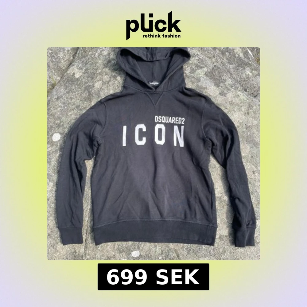 Svart hoodie från DSQUARED2 med stor vit 'ICON'-text och logga på bröstet. Klassisk modell med huva och långa ärmar. Tillverkad i mjuk bomullsmix som känns skön mot huden. Perfekt för dig som gillar streetstyle .