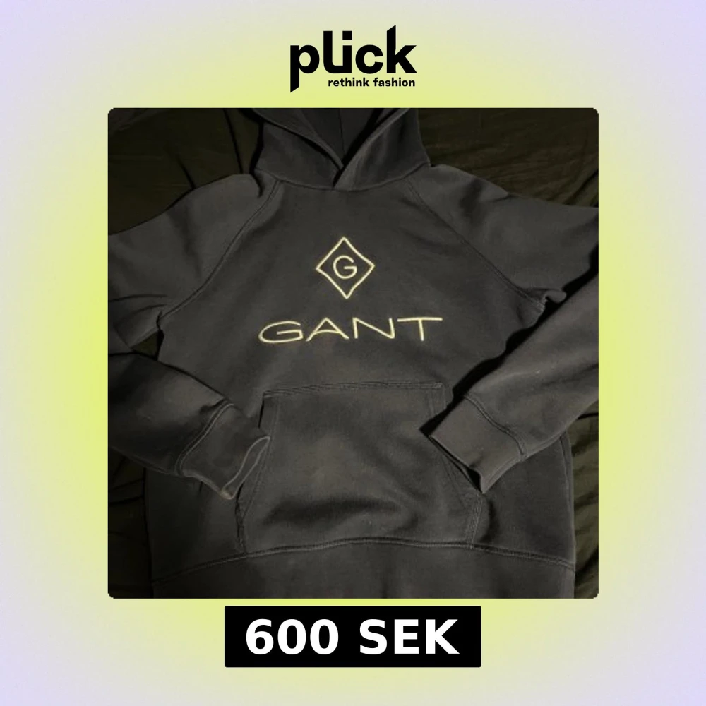 Säljer en stilren svart hoodie från GANT med broderad logga på bröstet. Tröjan har en klassisk känguruficka och långa ärmar. Perfekt för en avslappnad stil.