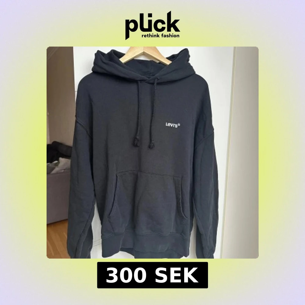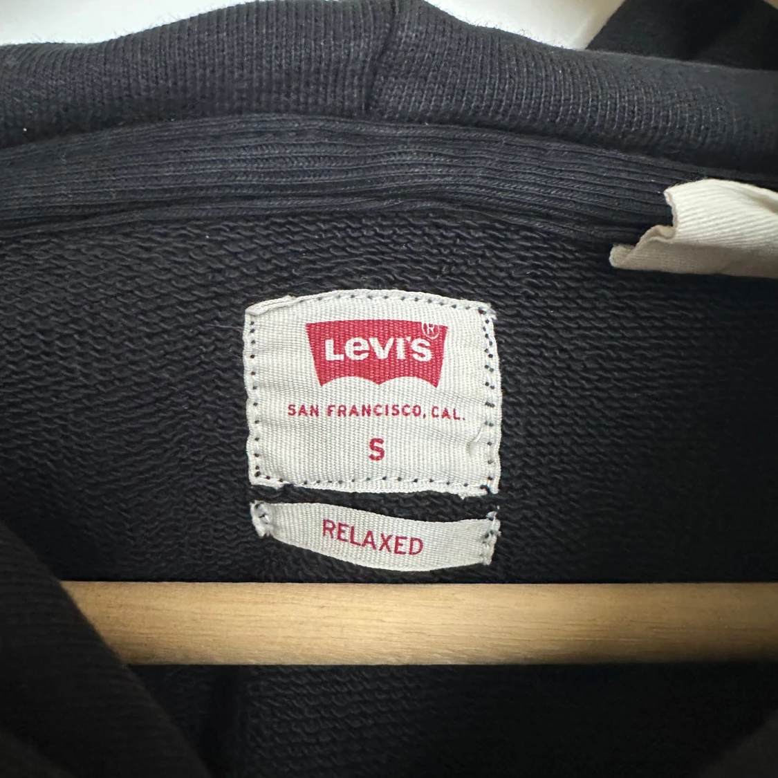 Säljer en svart hoodie från Levi's med en liten logga på bröstet. Stor och mysig att ha på sig. Andvänd sparsamt, kostar ca 600 nypris☺️