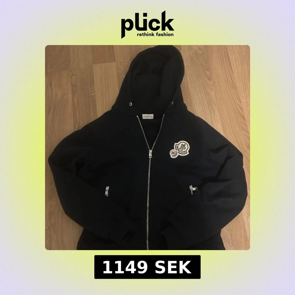 Snygg svart hoodie från Moncler med dragkedja och broderad logga på bröstet. Perfekt för en stilren och bekväm look. Den har en justerbar huva och praktiska fickor med dragkedjor. Funkar för L och M. Moncler tagg ingår och Nfc funkar (kan lösa bild), Hoodie snören finns kvar med. Kom dm för eventuella frågor. Priset är ej hugget i sten🙂