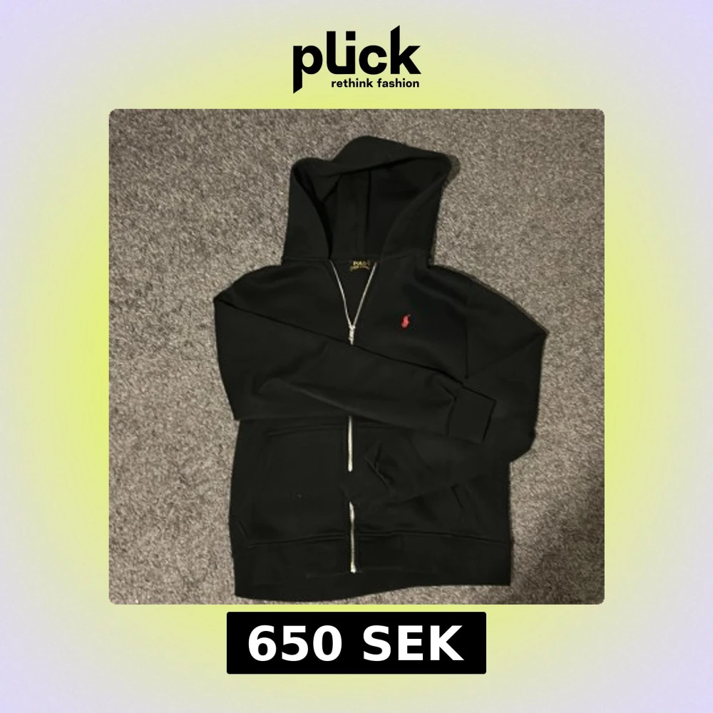 Svart hoodie från Polo Ralph Lauren med röd broderad logga på bröstet. Den är tjock och är storlek M men sitter som en S.