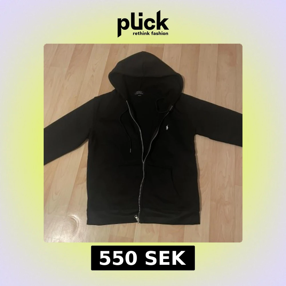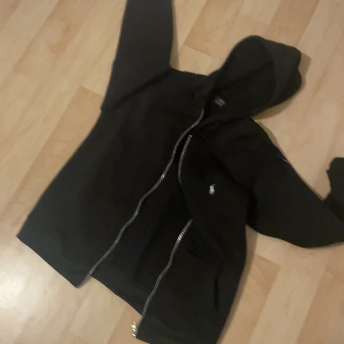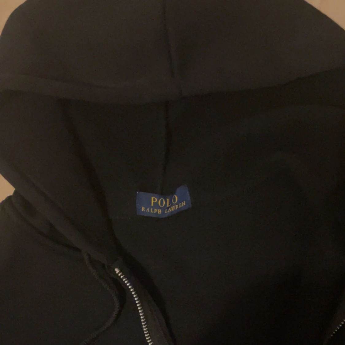 Svart hoodie från Polo Ralph Lauren med klassisk vit logga på bröstet. Tröjan har huva med snörning, hel dragkedja och en stor ficka framtill. Materialet är mjuk bomull och passformen är normal. Perfekt för chill dagar och streetwear-stil. Priset kan diskuteras