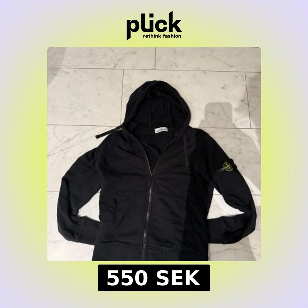 Svart hoodie från Stone Island med dragkedja och klassisk logotyp-patch på vänster ärm. Tröjan har huva med snörning och två stora fickor framtill. Perfekt för dig som gillar streetwear och vill ha en clean look med ikonisk detalj. Pris kan diskuteras