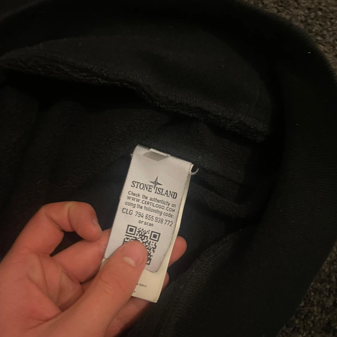 Säljer en svart hoodie från Stone Island med klassisk logga på ärmen. Osäker på äktenheten därav priset! Skick 8/10! Vid fler funderingar är det bara att höra av sig!