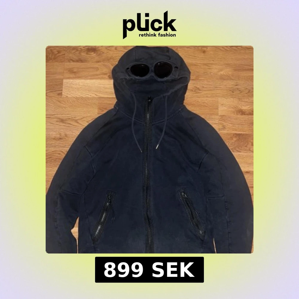 Svart hoodiejacka från C.P. Company med ikoniska goggles i huvan. Jackan har dragkedja framtill, två snedställda fickor med dragkedja och justerbar huva med snörning. Tillverkad i mjuk bomull för en skön och avslappnad look. Size XS, 8/10! Fler frågor i pm/Neo💫