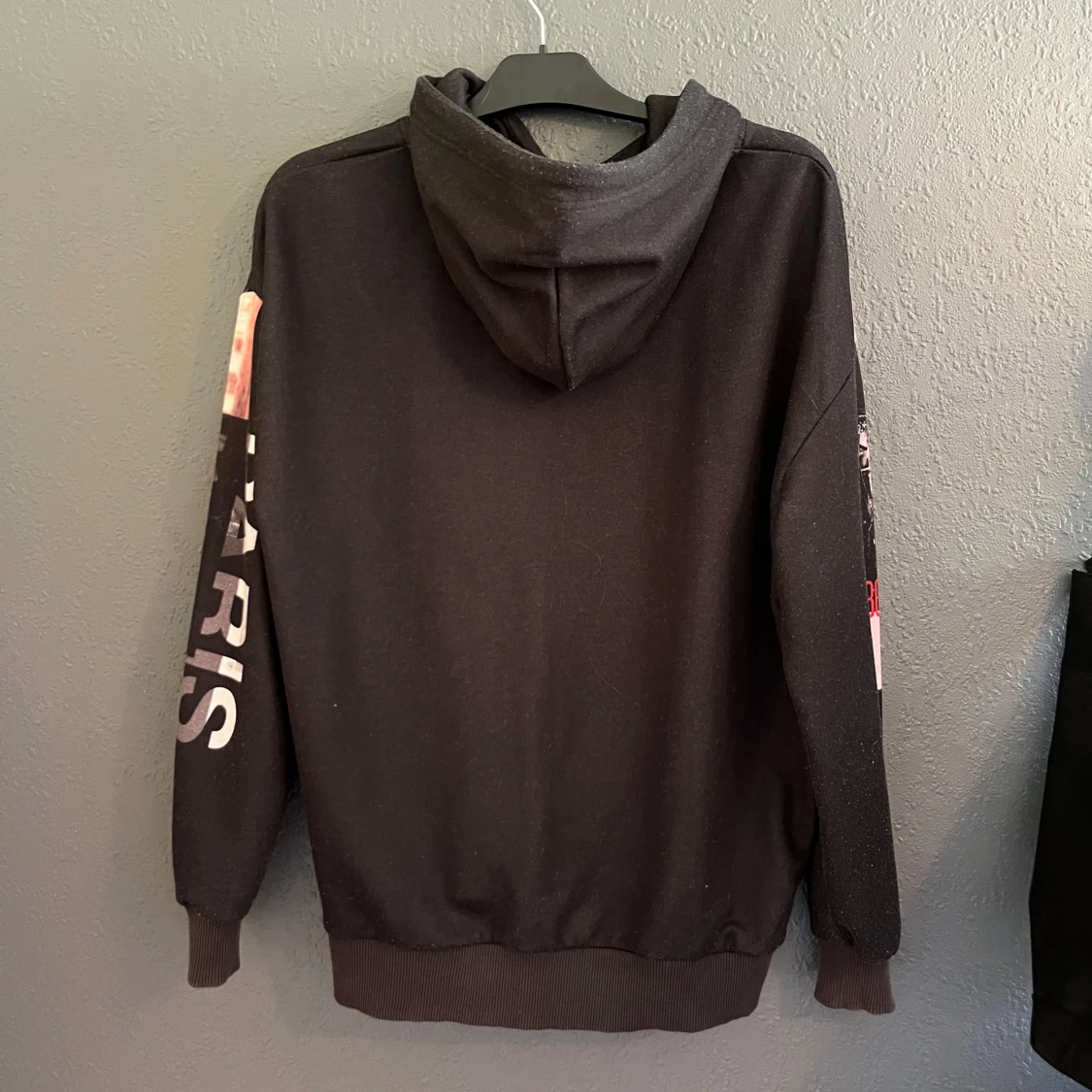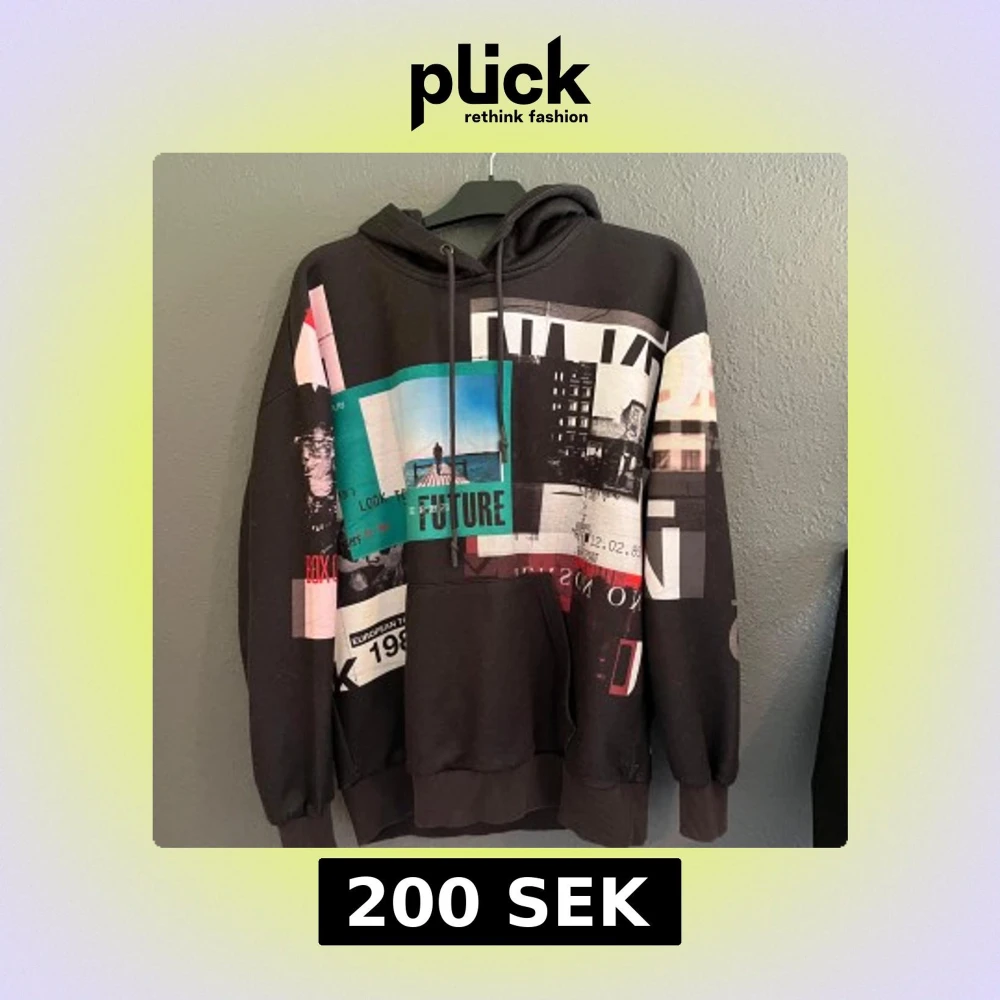 Cool svart hoodie från NA-KD med färgstarkt grafiskt tryck framtill och textdetaljer på ena ärmen. Tröjan har huva med dragsko och en stor magficka. Perfekt för en avslappnad streetstyle-look.