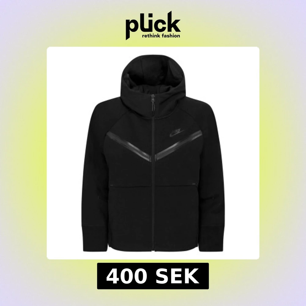 Svart hoodiejacka från Nike med dragkedja framtill och hög krage. Jackan har en sportig look med diskreta svarta detaljer över bröstet och en liten Nike-logga. Perfekt för en avslappnad stil.
