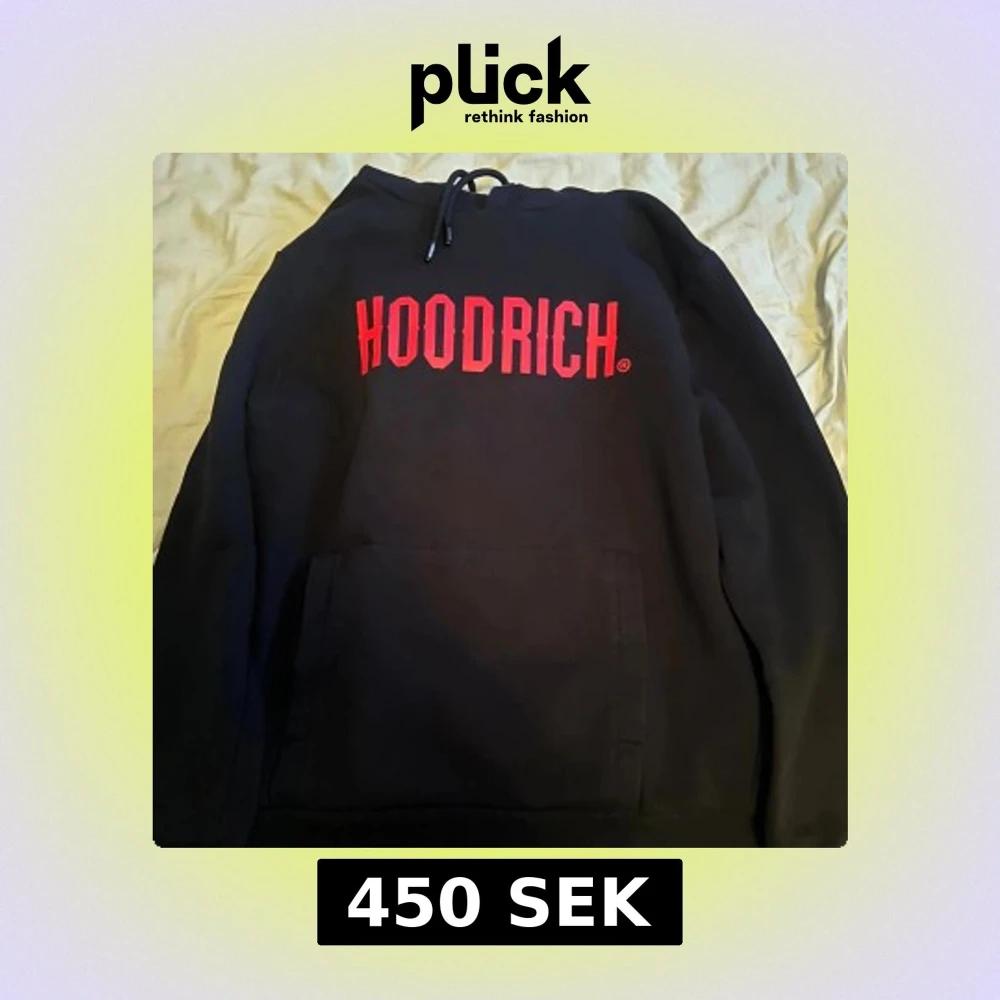 Svart hoodie från HOODRICH med stor röd logga på bröstet. Nästintill helt ny och oanvänd.