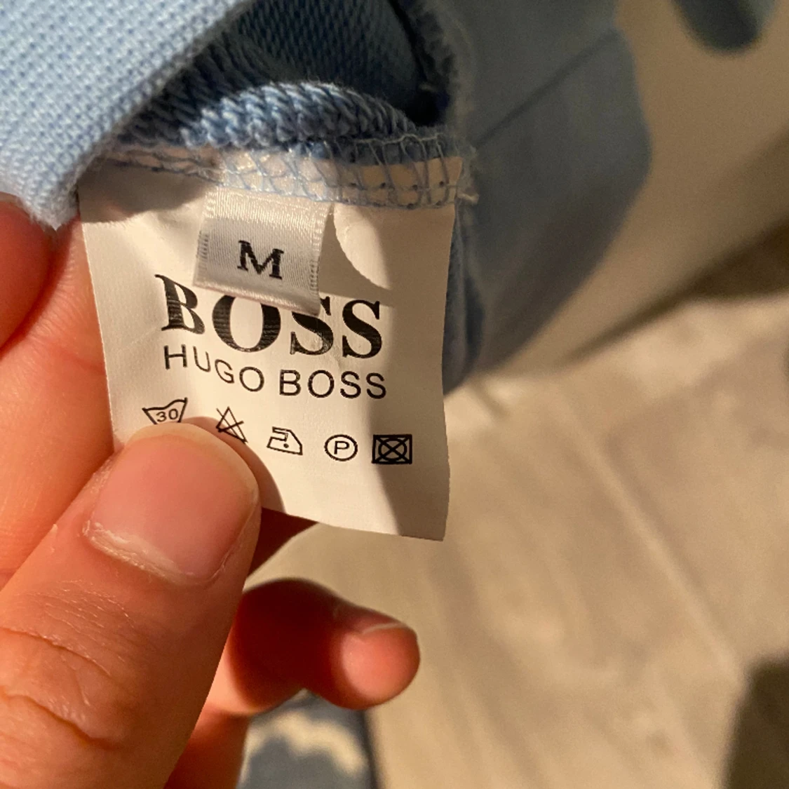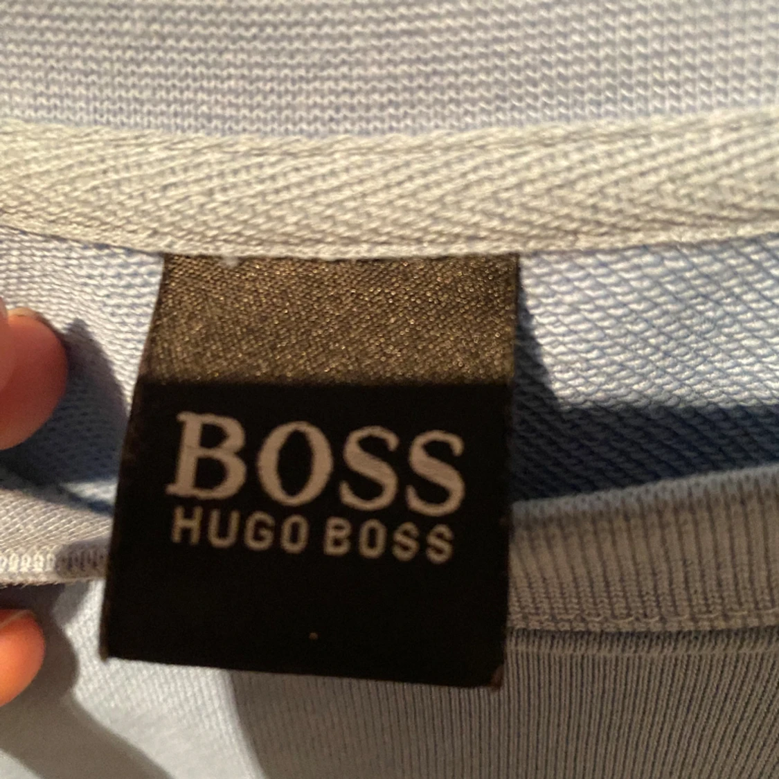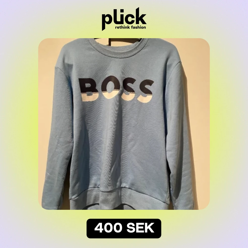 Blå Hugo boss tröja i princip perfekt skick inga defekter storlek M men passar också S