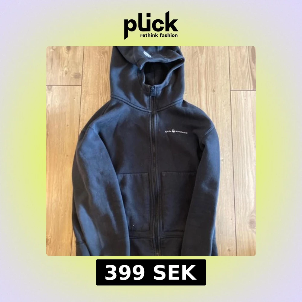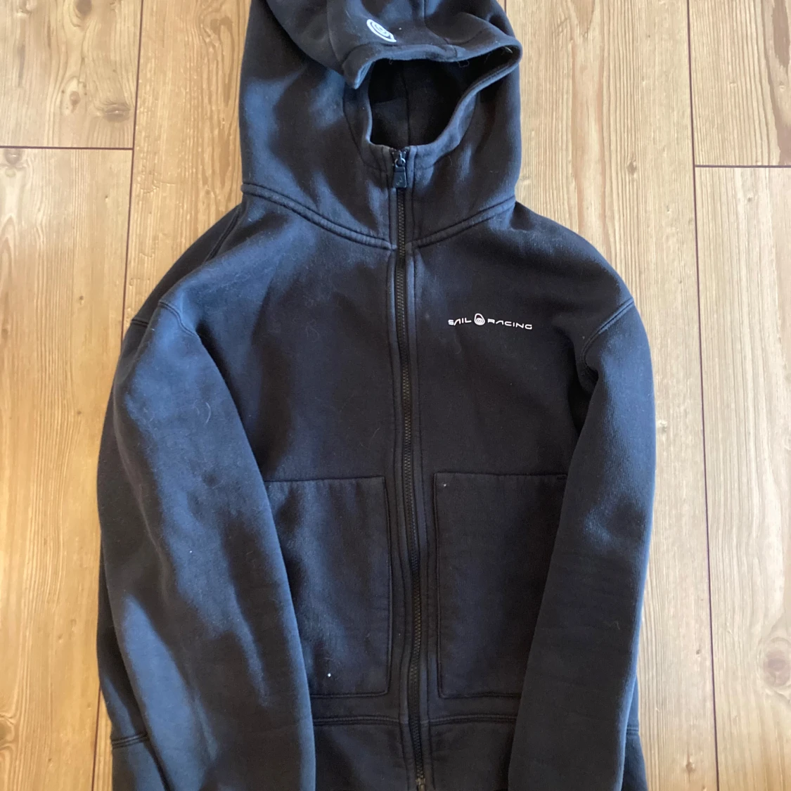 Säljer en svart huvtröja från Sail Racing med dragkedja och två fickor framtill. Perfekt för en avslappnad stil. Huvan ger extra värme och komfort. Ställ gärna frågor🌟