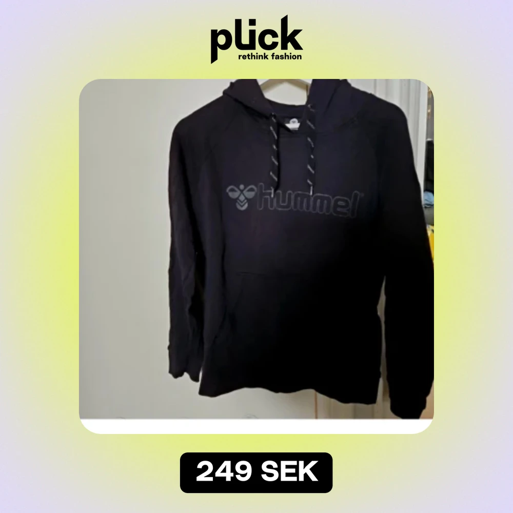 Svart oanvänd luvtröja med snören i luvan och ficka framtill. Strl M. Legat nedpackad, därav lite skrynklig Katt finns I hemmet
