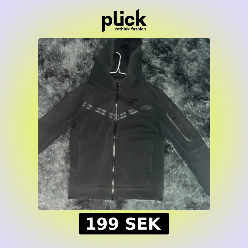Svart nike tech med huva och hel dragkedja framtill. Koftan har diskreta svarta detaljer på bröstet och ärmen, samt två sidofickor. Snygg och sportig design som passar perfekt till streetwear. Materialet är mjukt och känns bekvämt mot kroppen.