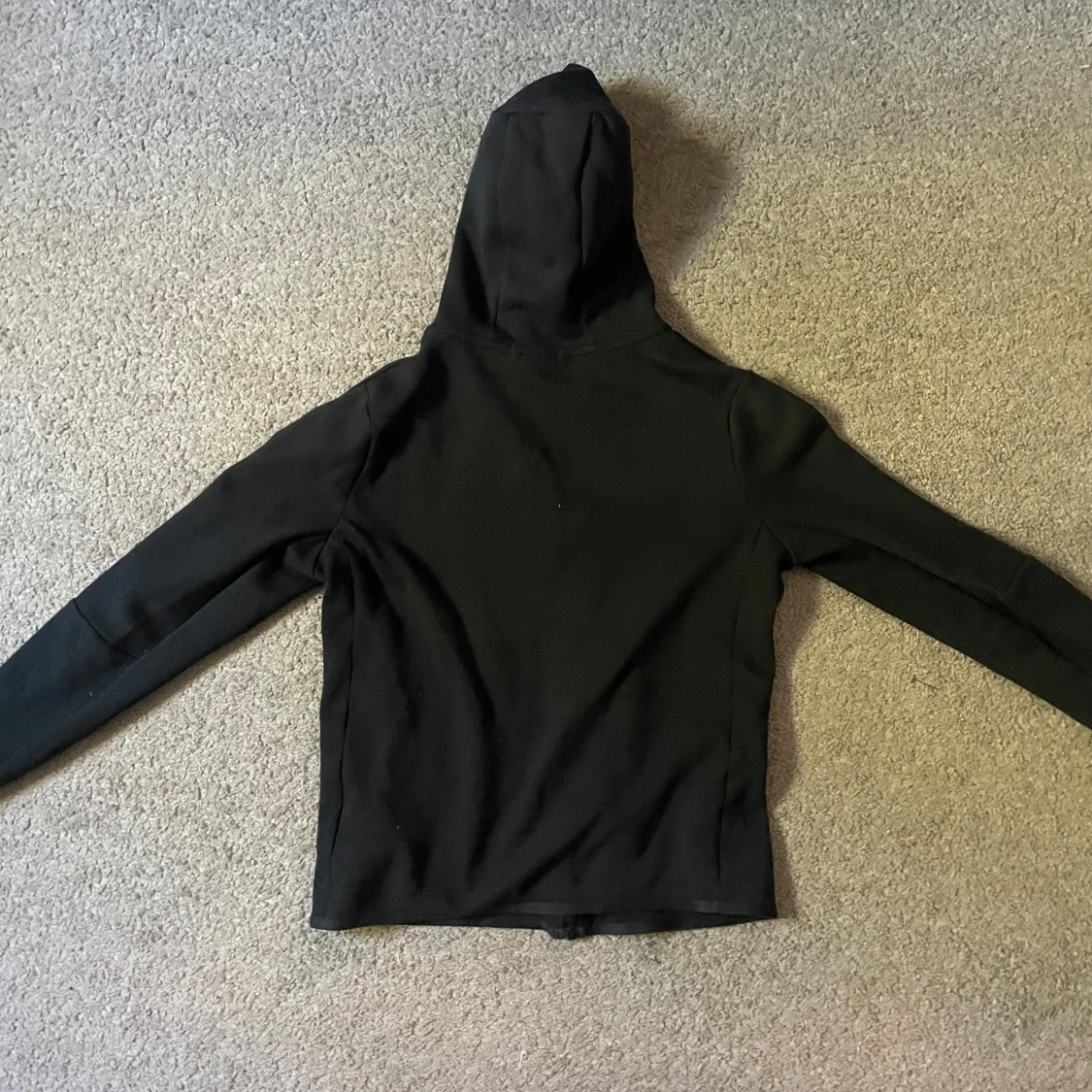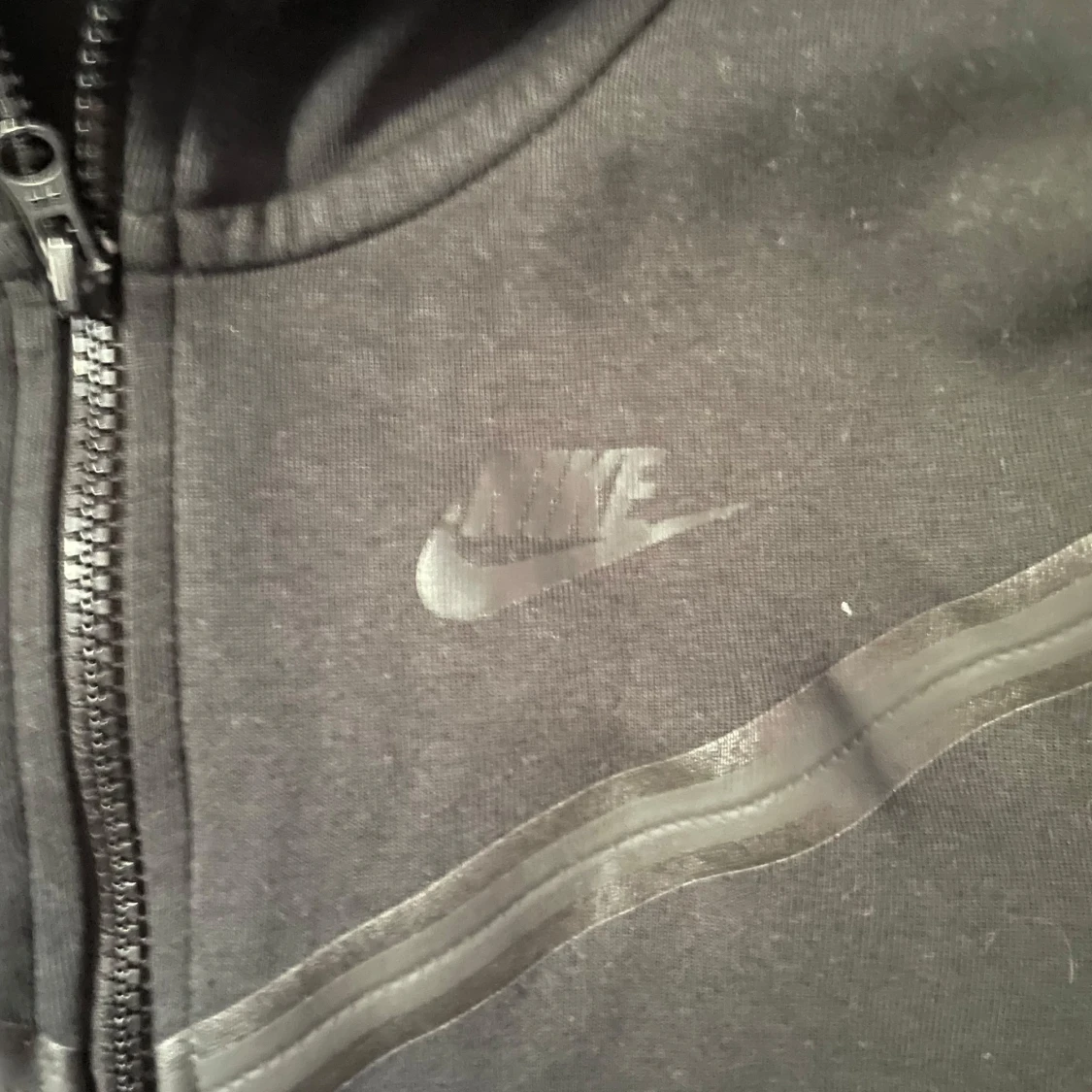 Svart hoodiejacka från Nike med hel dragkedja och huva. Jackan har diskreta svarta detaljer över bröstet och är tillverkad i mjuk bomull och polyester. Perfekt för chill dagar eller när du vill ha en sportig look. Klassisk Nike-logga på bröstet.