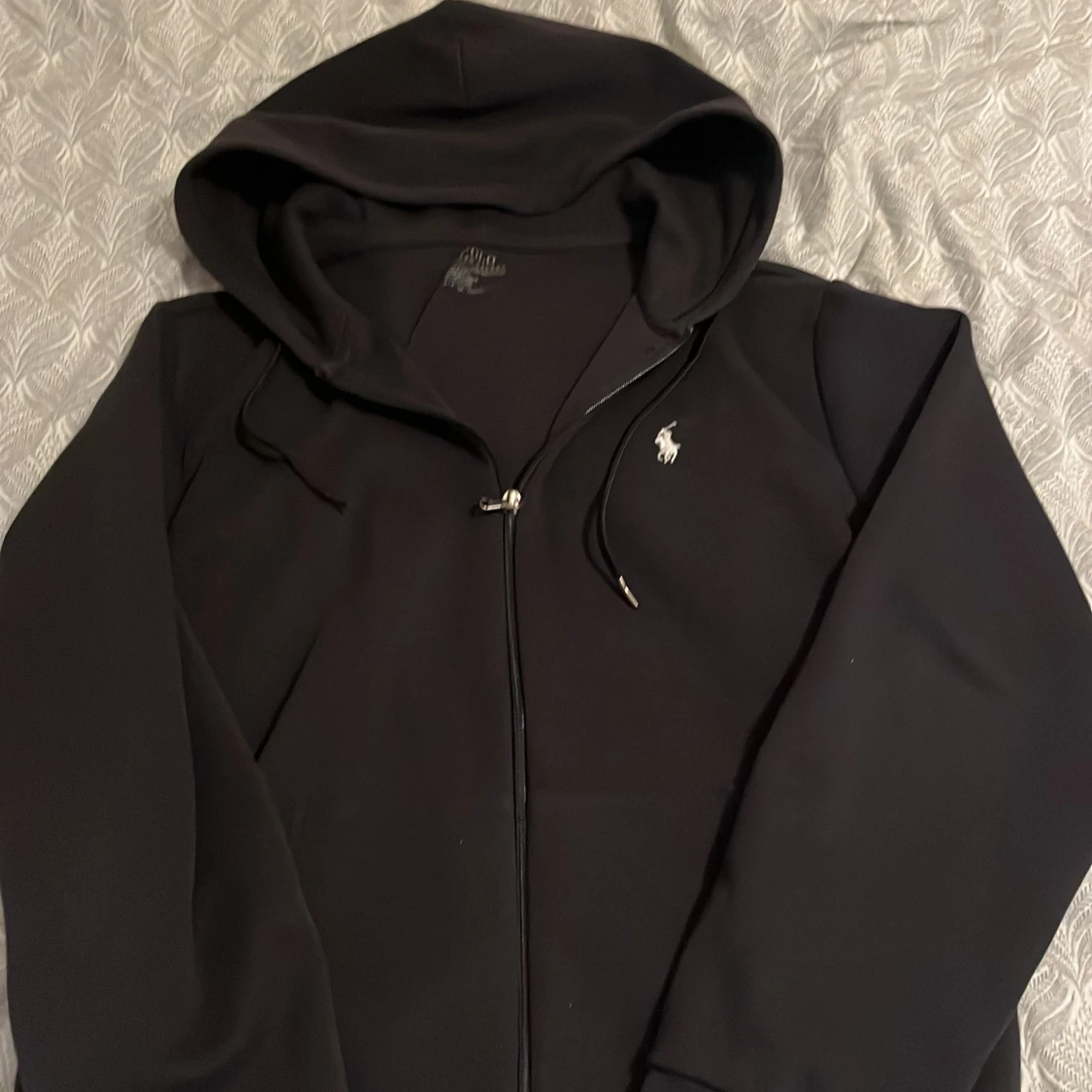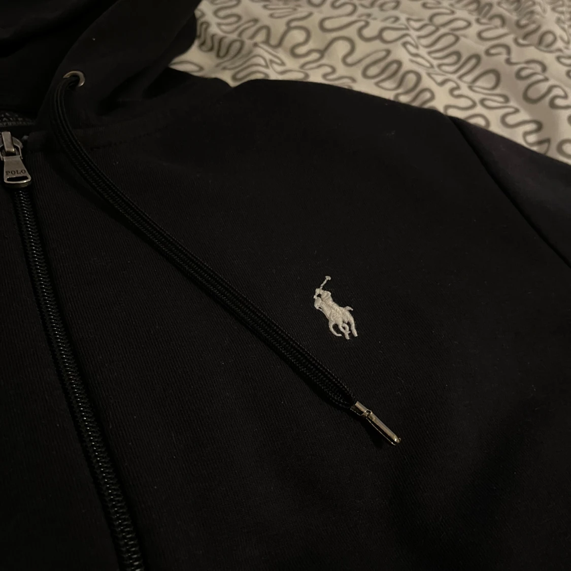 Säljer min polo Ralph Lauren zip hoodie som är svart och storlek S. felfri förutom en liten defekt på snöret som man ser i bilden.