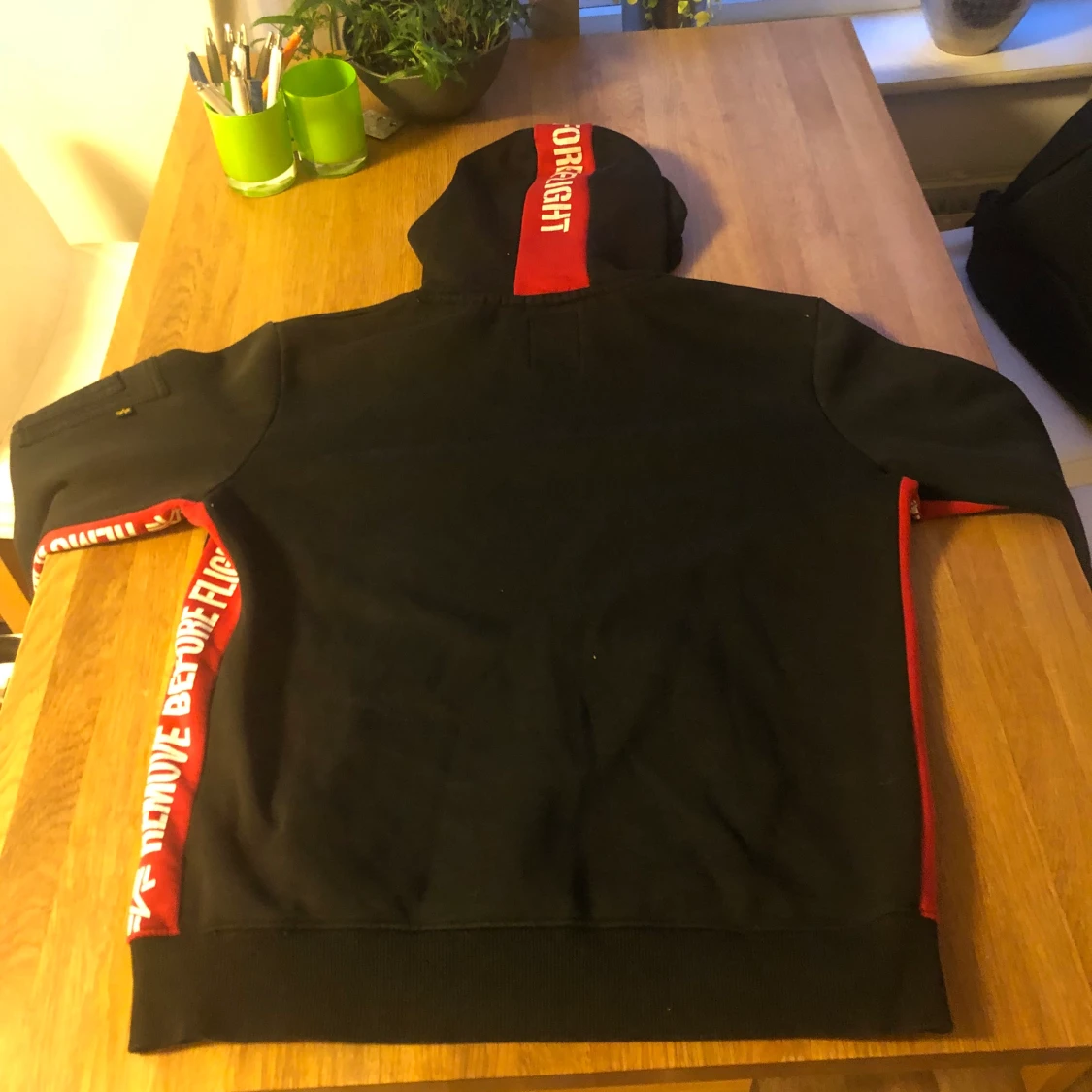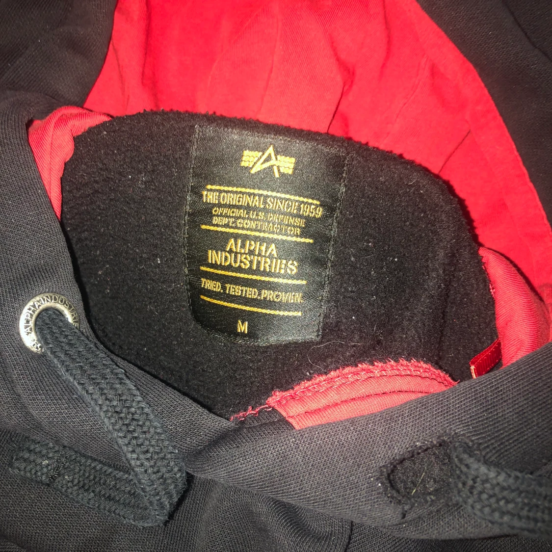 Alpha Industries Hoodie i bra skick förutom metall ringen vid snörehålet är borta. Orginal pris 1000kr
