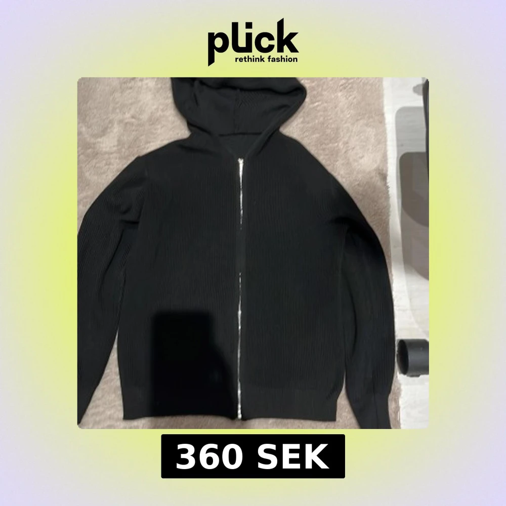 Svart hoodie från ”Axel Luxe” med ribbad struktur och hel dragkedja framtill. Tröjan har huva och långa ärmar, perfekt för en chill och stilren look. Materialet känns mjukt och följsamt, och den svarta färgen gör den enkel att matcha med allt. Storlek XXS men sitter som XS
