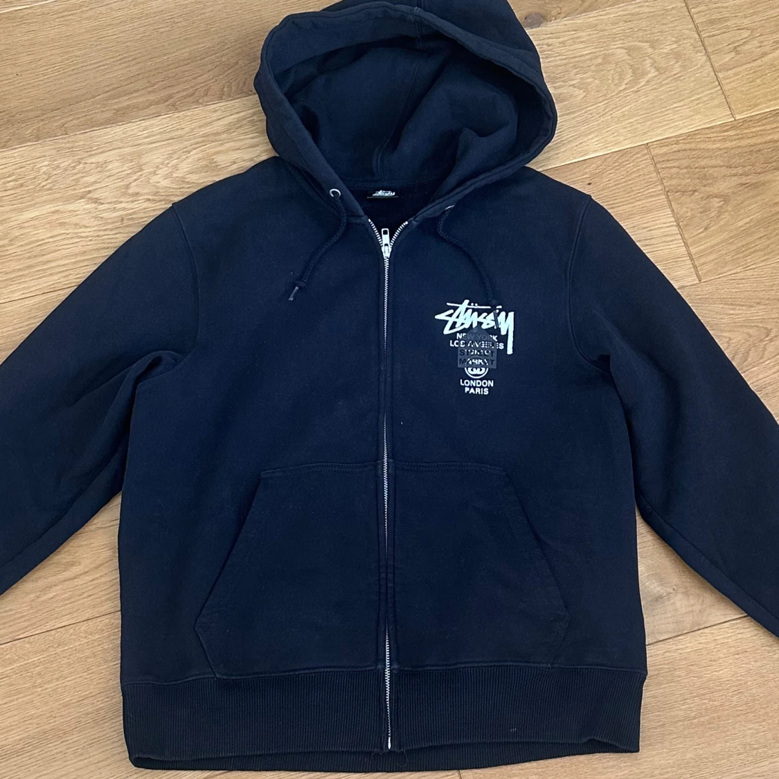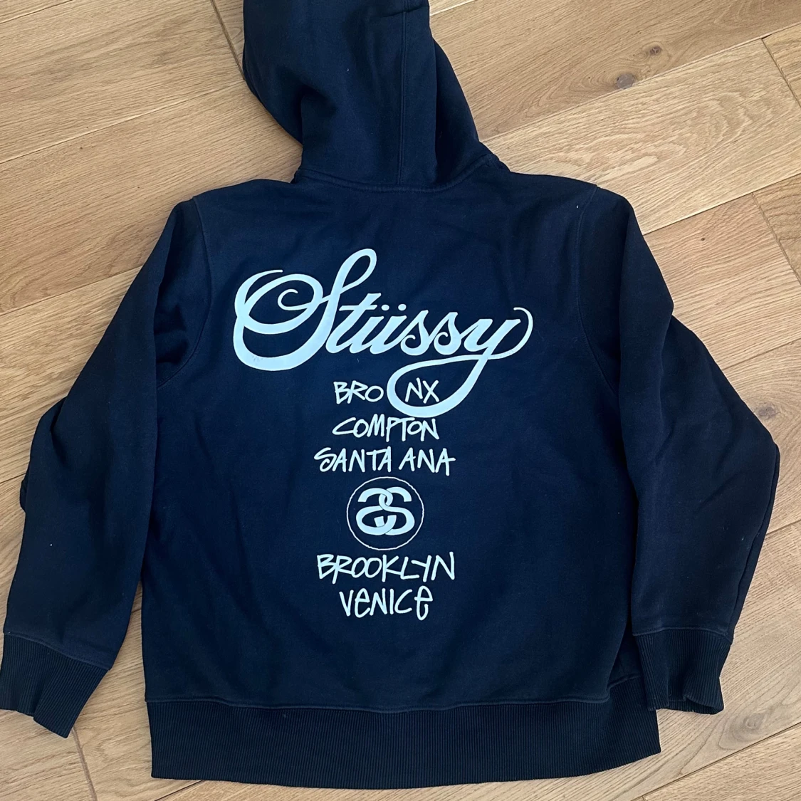 Säljer en svart stussy zip hoodie från Doverstreet market, riktigt snygg och sällsynt. Den är i nyskick nästan aldrig använt, skriv gärna om ni har några frågor