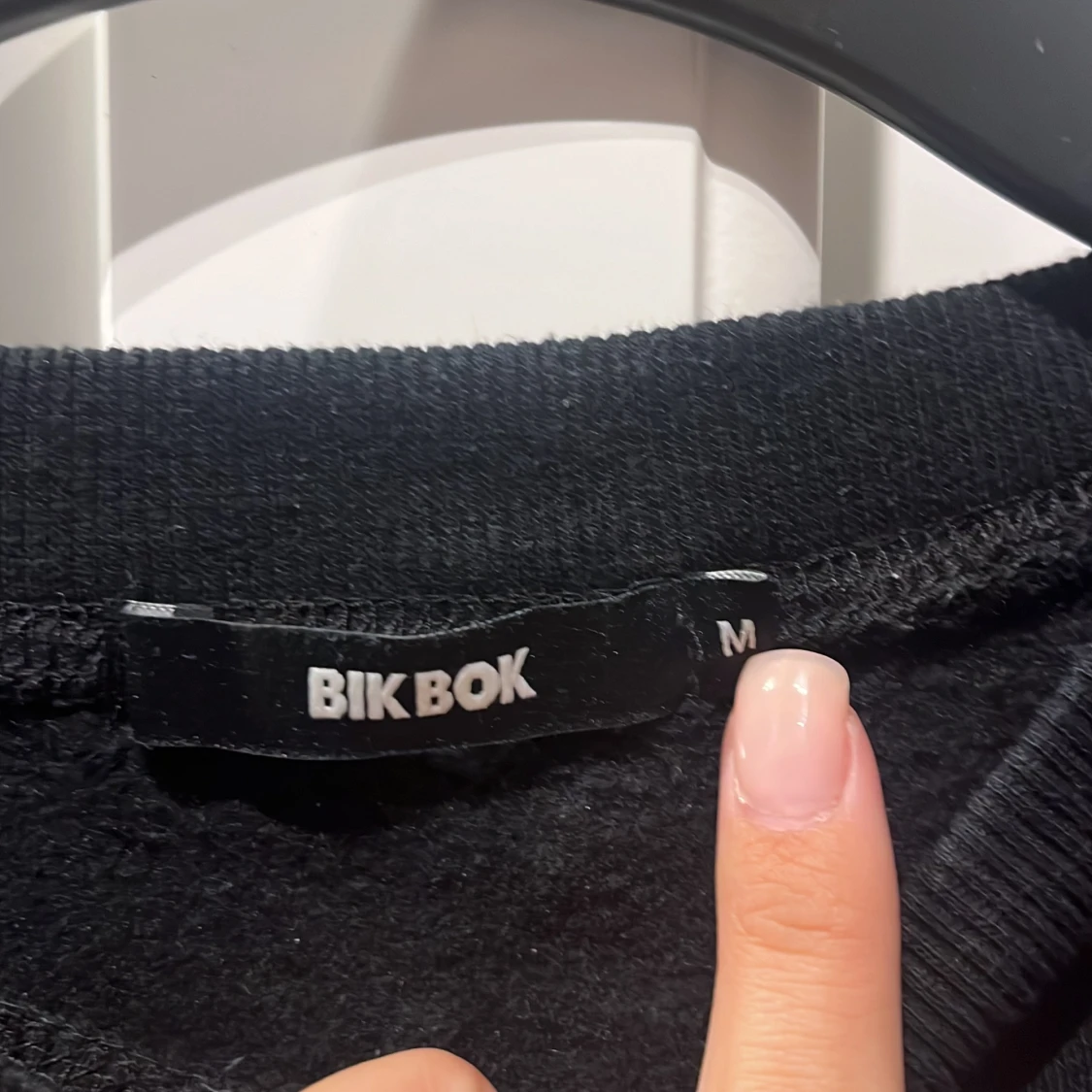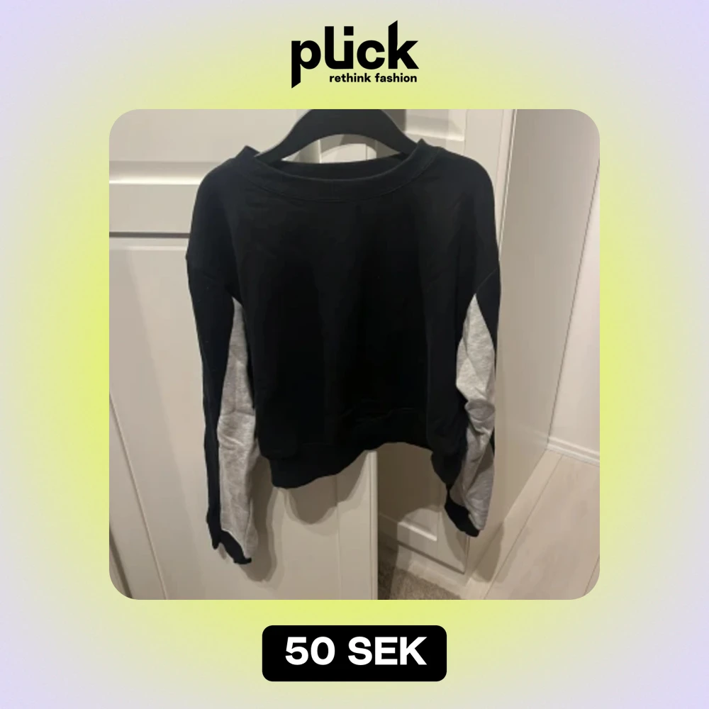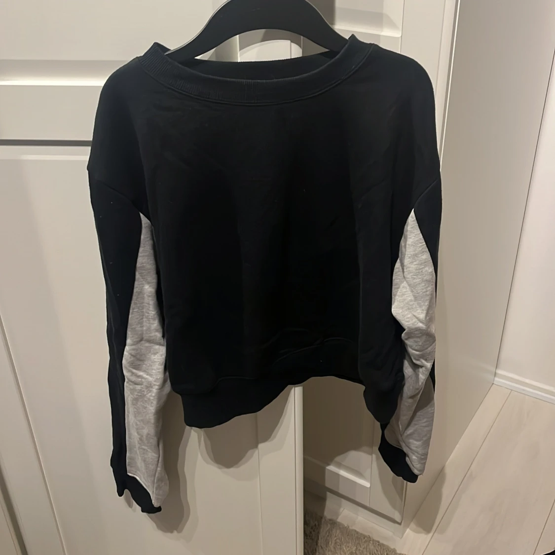 Svart sweatshirt med grå insidor av ärmarna. Storlek M från Bik Bok.