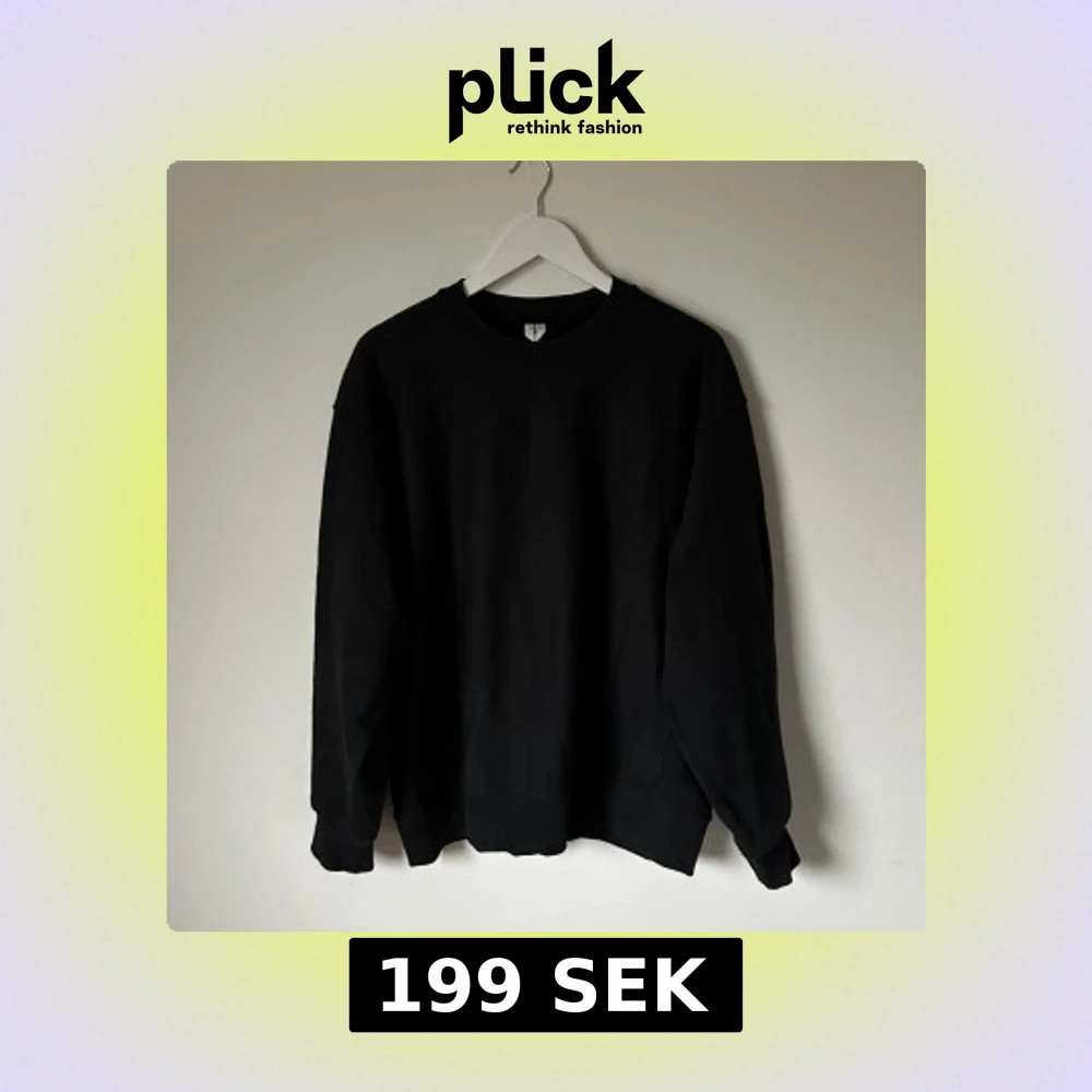 En stilren svart sweatshirt från ARKET i storlek M. Tröjan har oversized fit, rund hals, långa ärmar och ribbade muddar vid ärmslut och nederkant. Tillverkad i mjukt material, perfekt för en chill och enkel look. Passar dig som gillar minimalistisk stil. 5N15