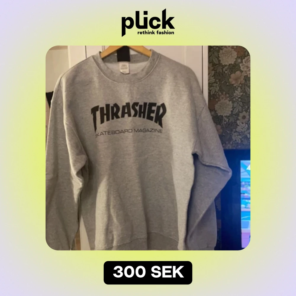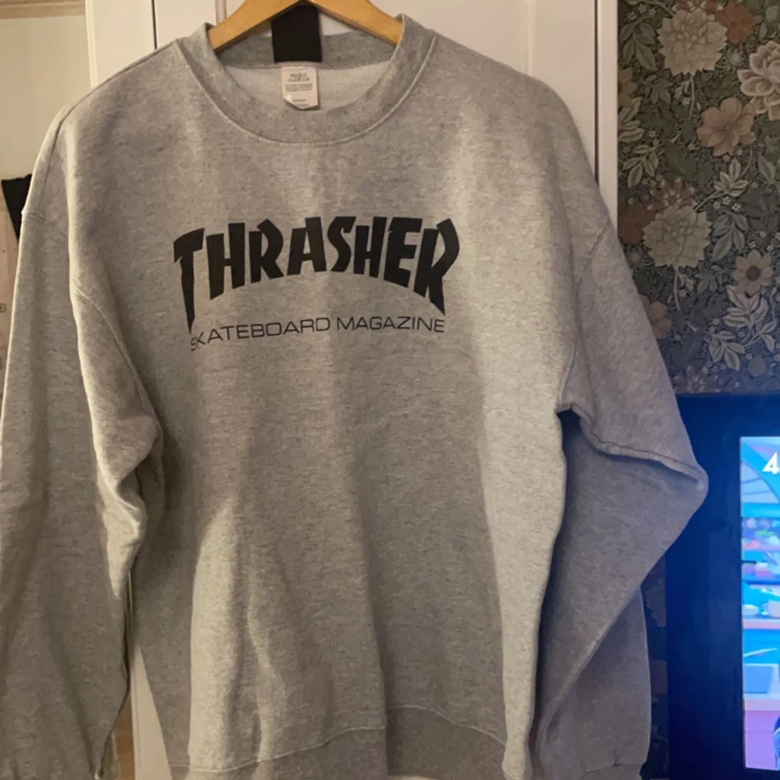 Sweatshirt från thrasher i fint skick, sparsamt använd då den är lite för stor för mig. Om någon vill byta mot en lika fast med luva i strl S är jag intresserad 🌸 annars säljer jag den för 300 kr 🩷