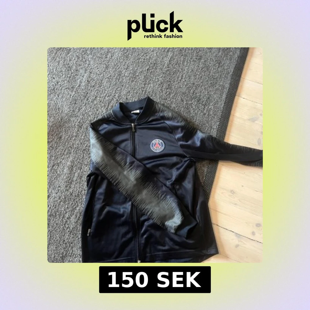 Snygg svart träningsjacka med PSG-logga på bröstet. Jackan har en dragkedja framtill och en cool grå design på armarna. Perfekt för sportiga aktiviteter eller som en stilren vardagsjacka.