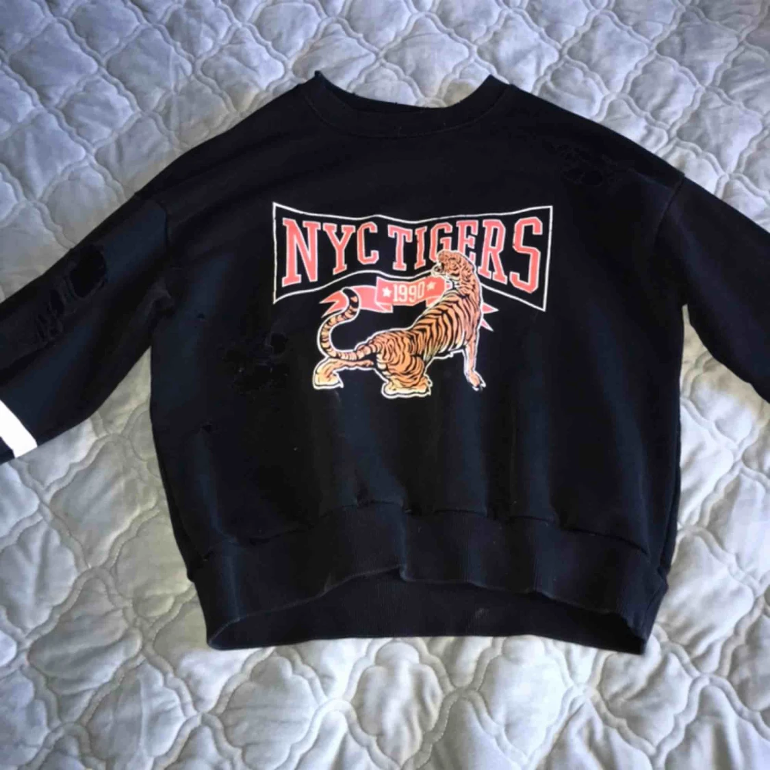 Svart ”trasig” tröja från BikBok🖤 Ganska använd men den är i bra skick Den ser smutsig ut bak på ryggen men det tvättar man bort❣️ Skriv för mer info🥰
