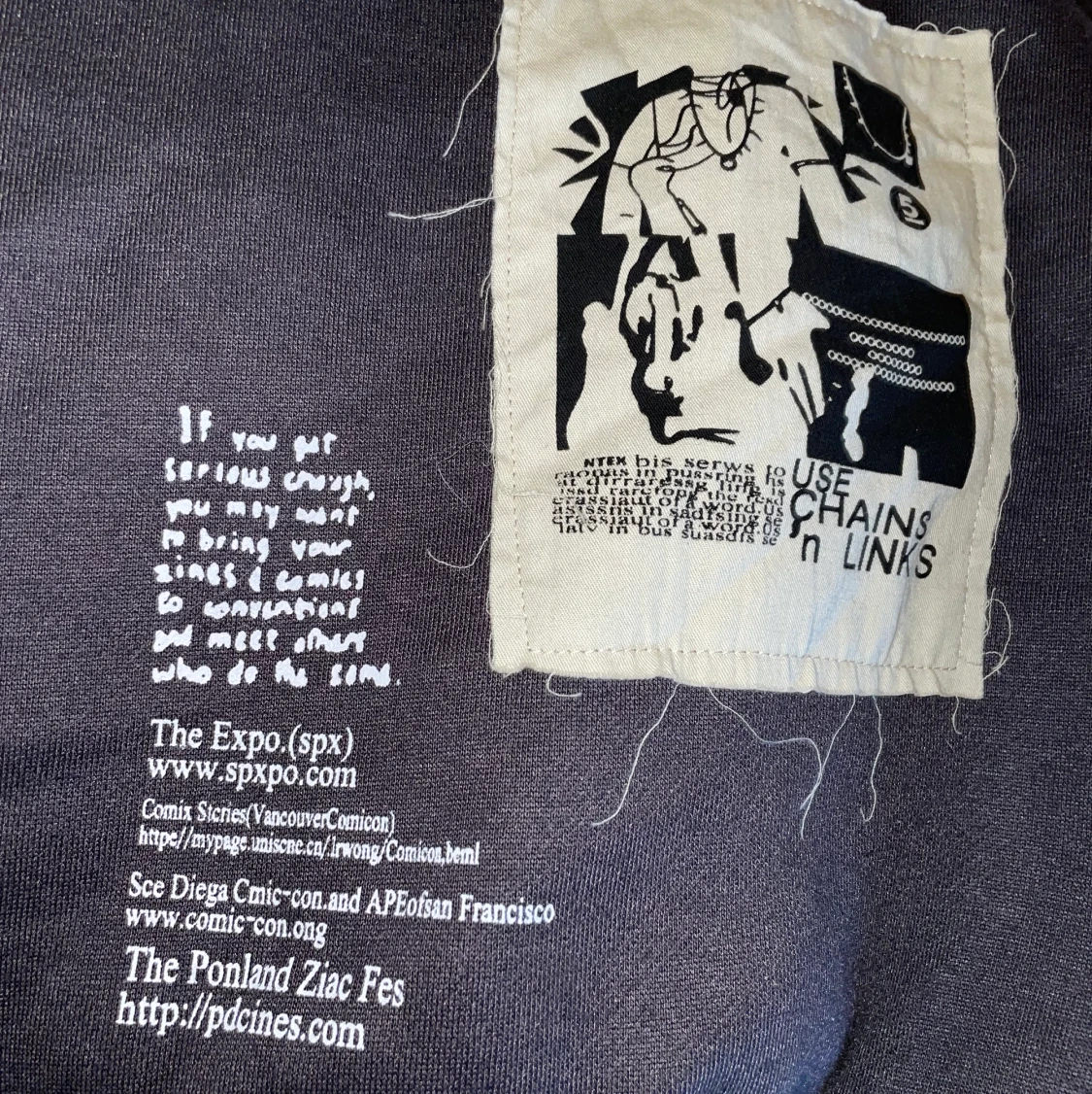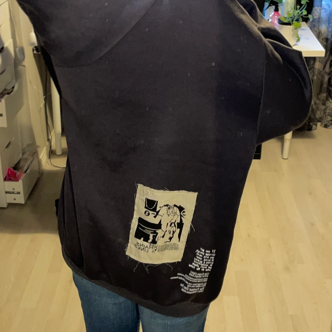 Oversized svart hoodie med tryck, köpt från Emmiol. Storlek M men skulle säga L/XL
