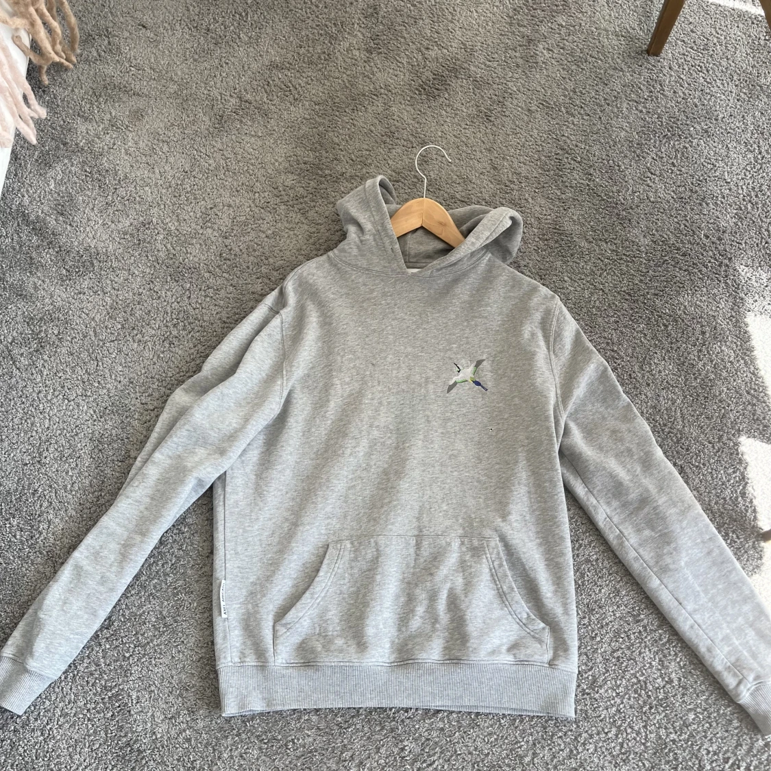 Grå arigato hoodie med fågelloggan på bröstet, sjukt snygg. Ordinarie pris ca 2000kr