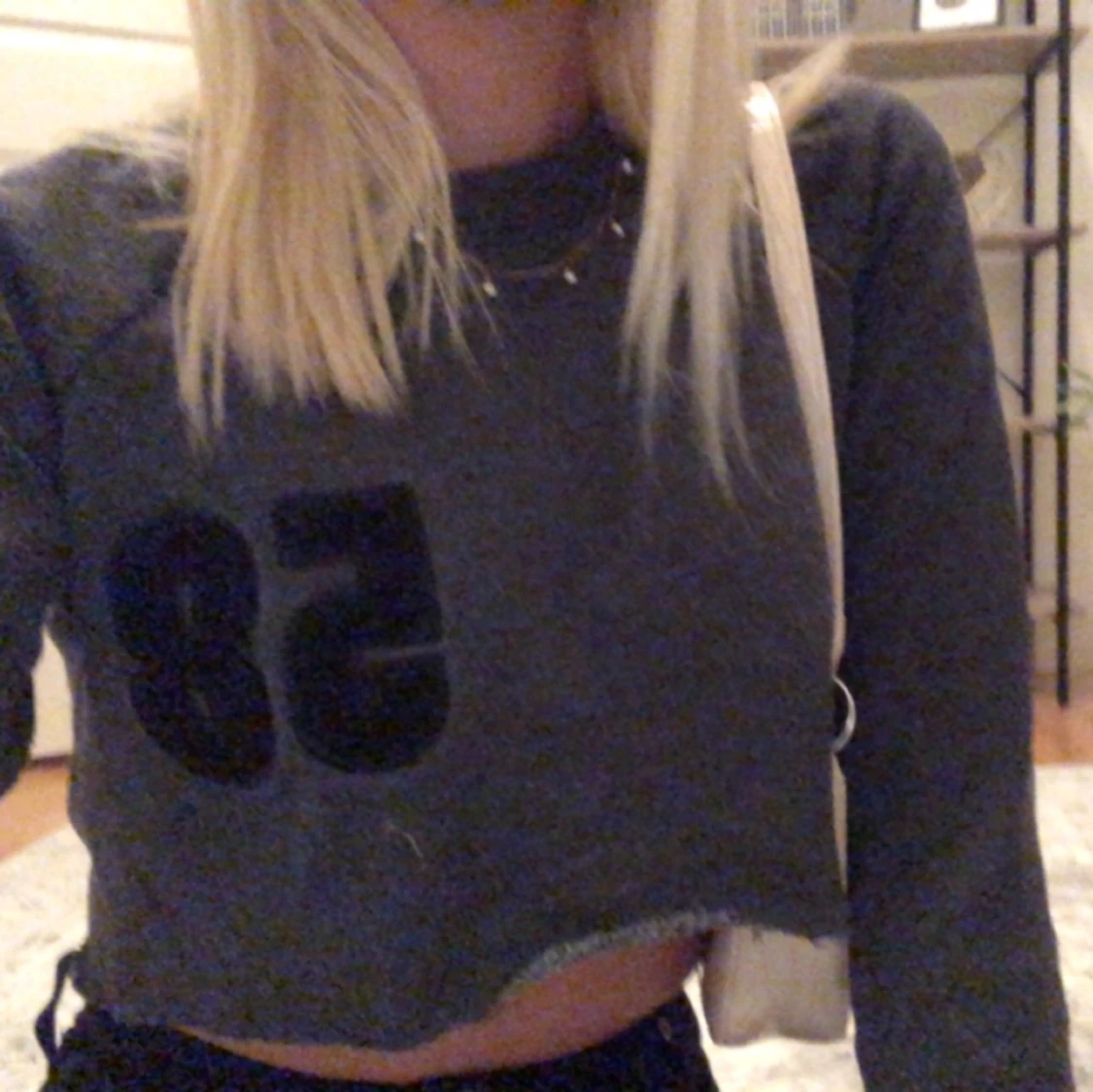 Jättesnygg croppad sweatshirt. Har själv croppat den och den sitter jättebra. Säljer pga av att den inte används så mycket. Den är i bra skick!:)