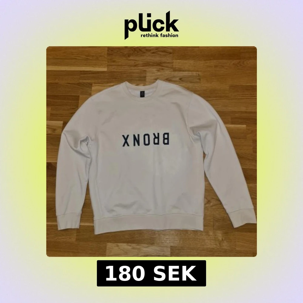 Säljer en stilren beige sweatshirt från SOC med texten 'BRONX' i svart på framsidan. Tröjan är tillverkad i en mjuk bomullsblandning och har långa ärmar samt rund halsringning. Perfekt för en avslappnad look. Skicket är 10/10