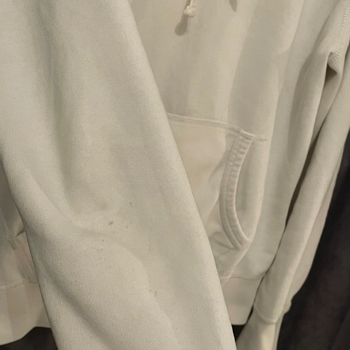 Raffe hoodie - vit - skick 8/10, själva hoodien är i suveränt skick, ända defekterna är ett par små fläckar här o där, (ex: bild 4 & bild 5), därav priset - Fläckarna kanske går bort i tvättmaskinen, har ej prövat själv - storlek S, passar S, jag är 177 och den passar perfekt - pris kan diskuteras!