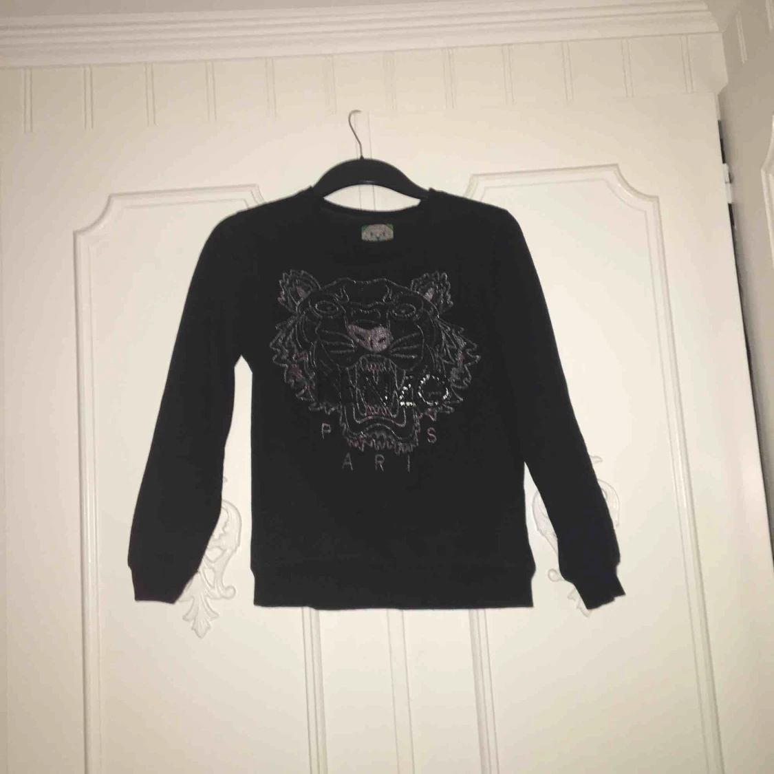 Svart Kenzo sweatshirt med silver detaljer. Ganska liten i storleken, funkar definitivt som en XS. Inga defekter men den är väl använd! Priset kan diskuteras och jag kan mötas upp i Stockholm💗