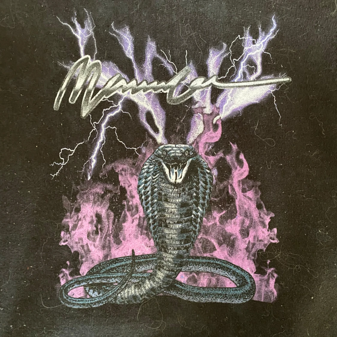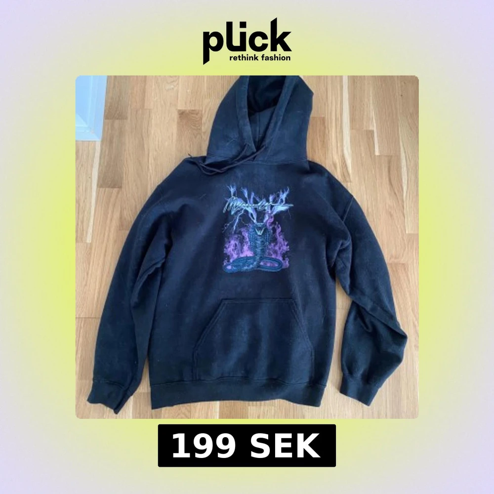 Fet hoodie me blixtar o kobra o allt 😛🤯😛😛 storlek s men passar m också! Färgen på hoodien är blå o svart