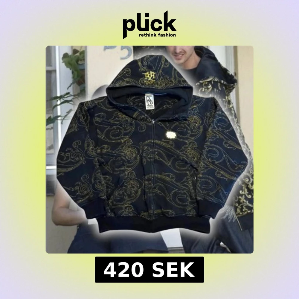 As det gul och svart hoodie. Mått 75x61. De har lite småskador vid ärmarna(dm) står M men sitter som L