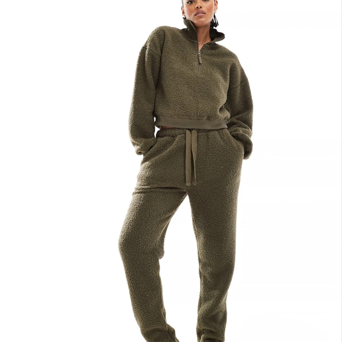 Supermysigt beiget set från ASOS. Sista bilden är för att visa hur modellen ser ut på. Aldrig använda, storlek S i både byxor och tröja. Nypris 459kr