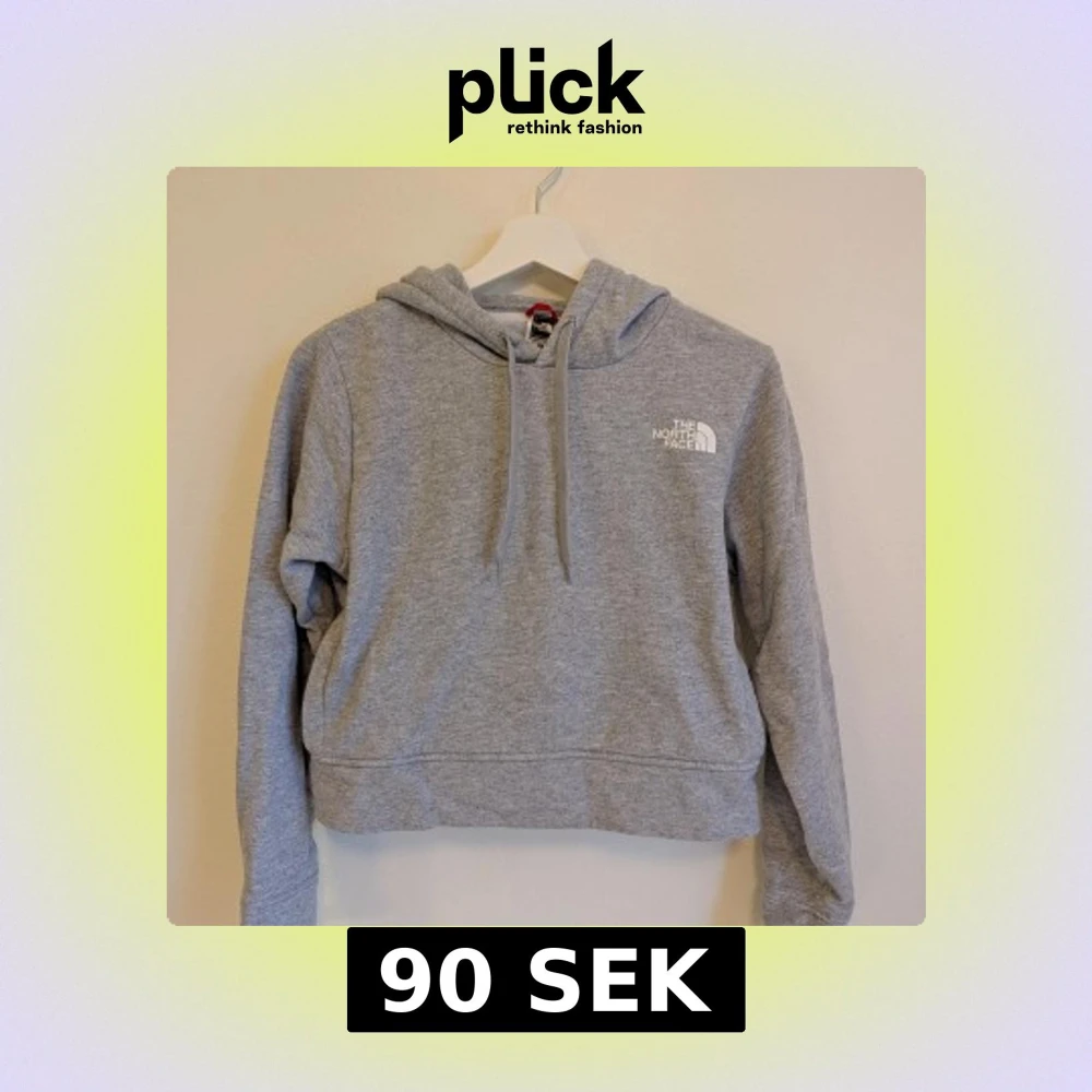 Grå croppad hoodie i storlek M från The North Face. En magficka på framsidan med två öppningar för händerna. Liten i storleken, så mer som en storlek S. Från rökfritt och djurfritt hem.