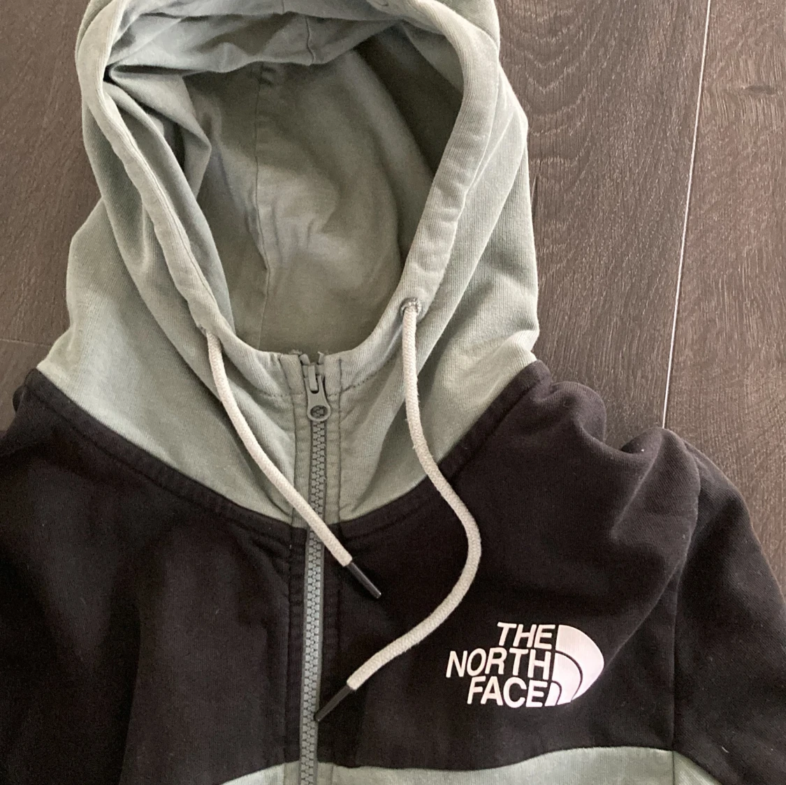 En fin svart/grön zip hoodie från The North Face i storlek XS. Inga defekter, skick 8/10.