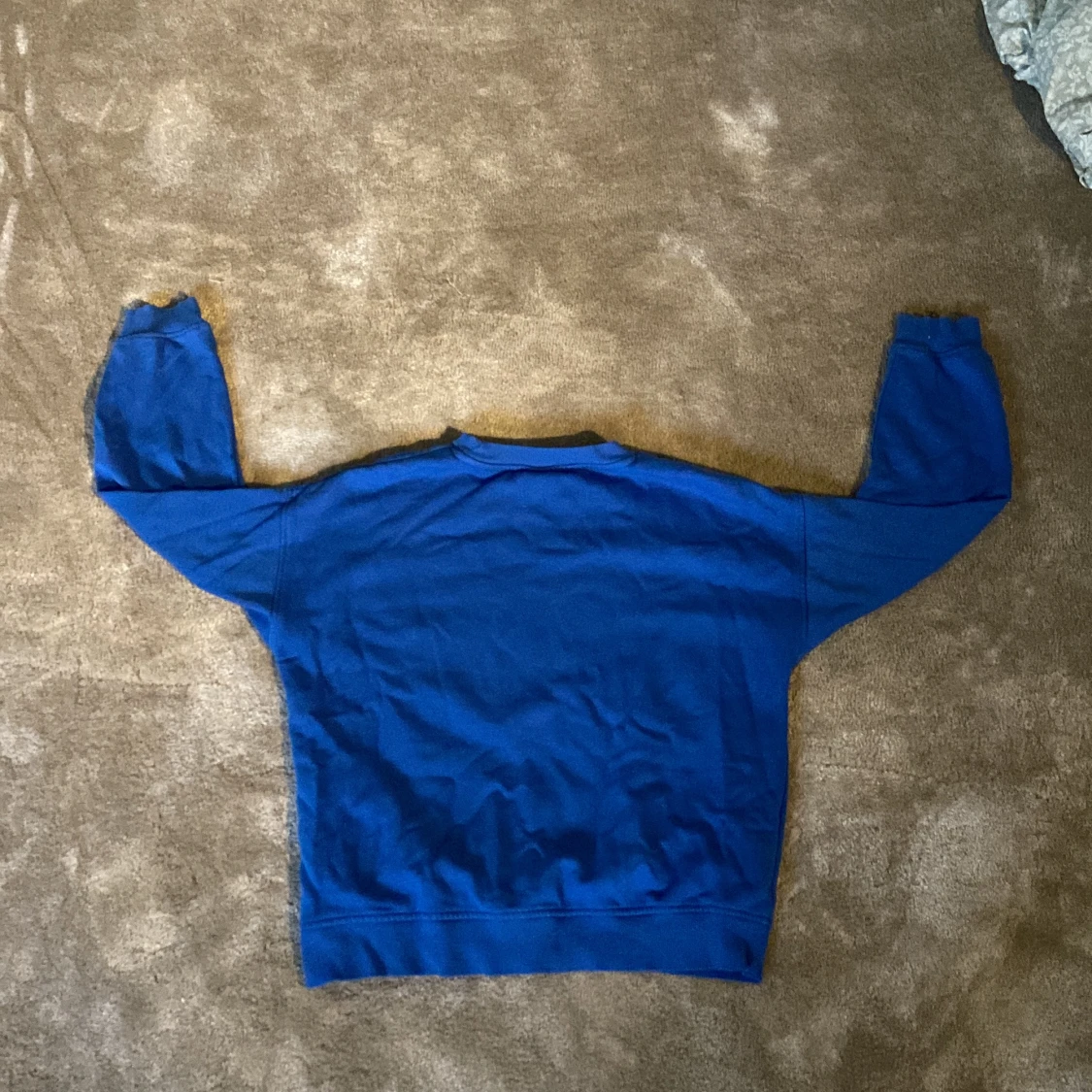 En blå tjocktröja där det står weekend från Lindex storlek 146/152