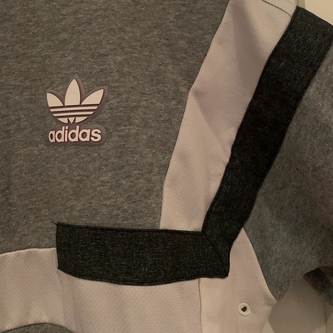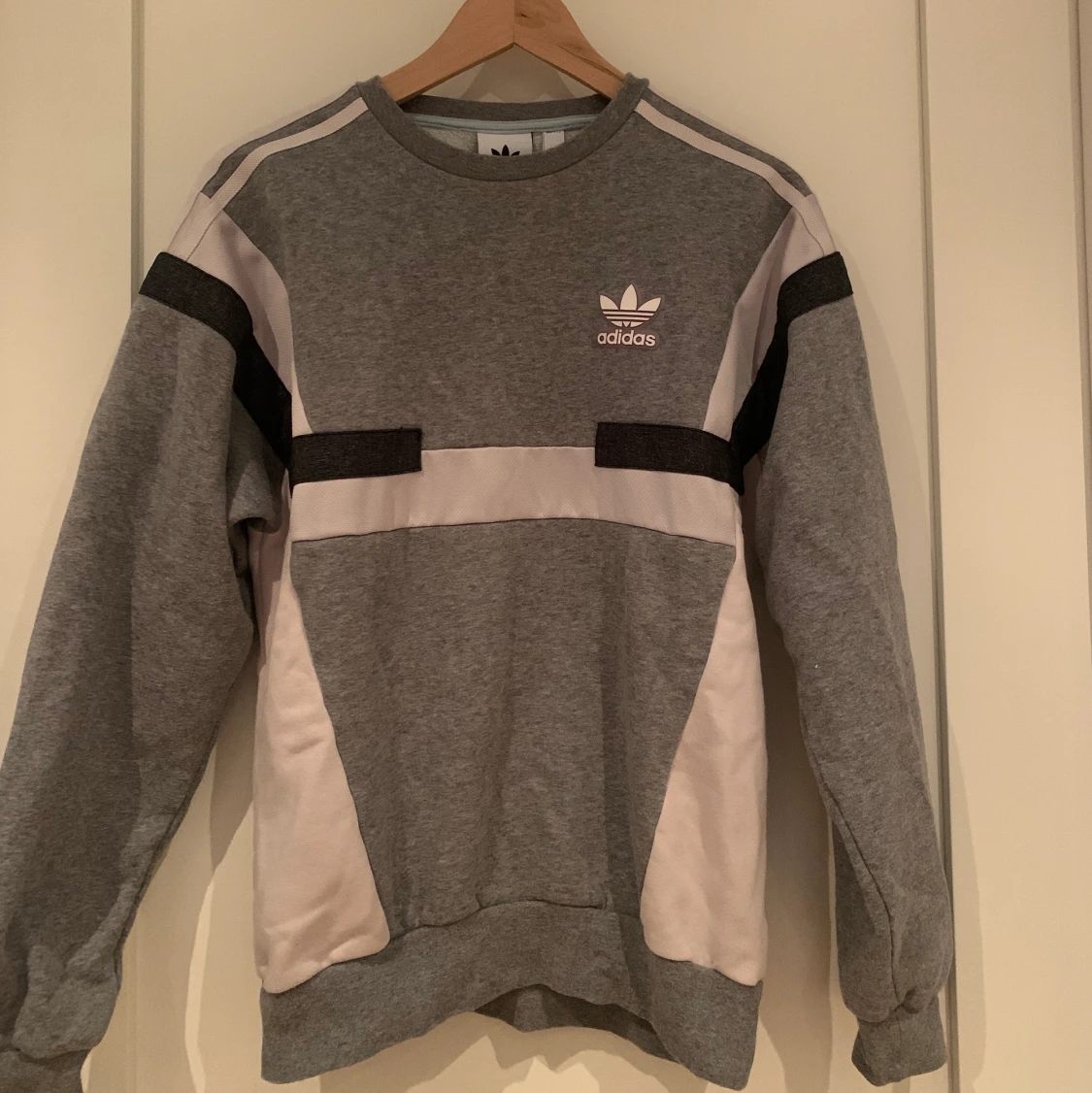 Grå tjocktröja från Adidas med mörkgrå/vita detaljer🤍 Storlek xs men är ganska oversize på mig som är 167 (brukar ha S)
