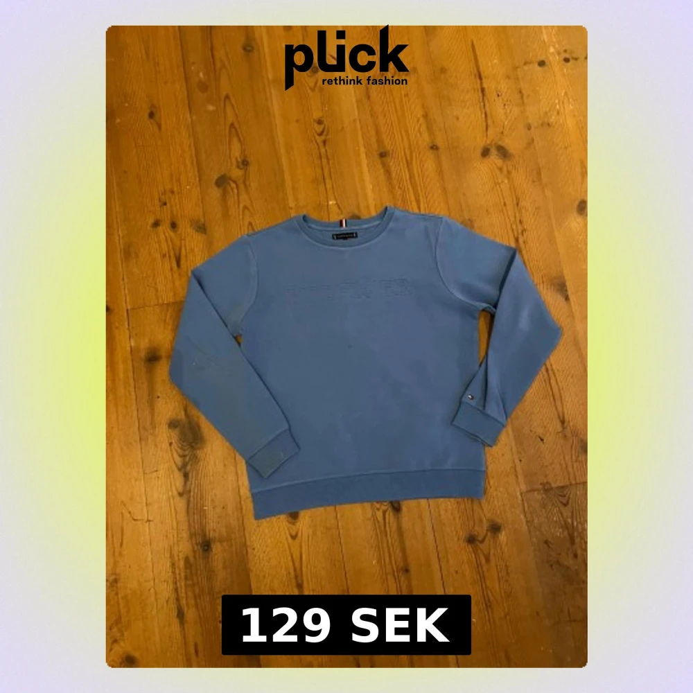 Snygg blå sweatshirt från Tommy Hilfiger med diskret broderad logga på bröstet och klassiska Hilfiger-detaljer vid halsen och ärmslut. Tröjan har rund hals, ribbade muddar och är långärmad. Perfekt för chill dagar och enkel att matcha med jeans. En liten fettfläck under texten. Därav priset.