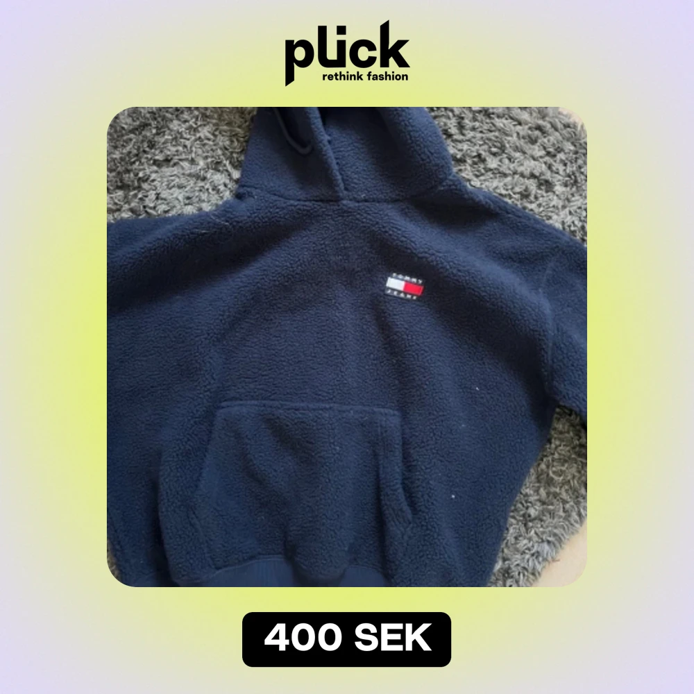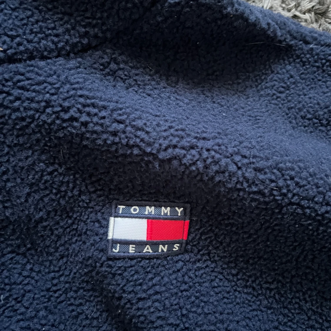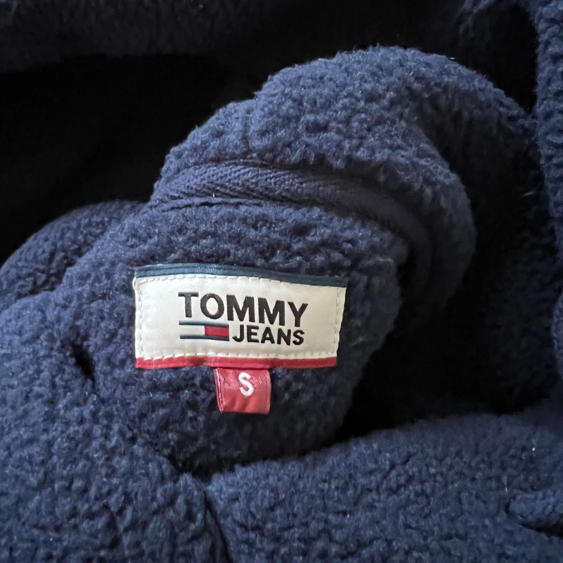 Säljer denna tommy hilfiger hoodie i teddy material. Den är i förgen marinblå och knappt använd så i väldigt fint skick.