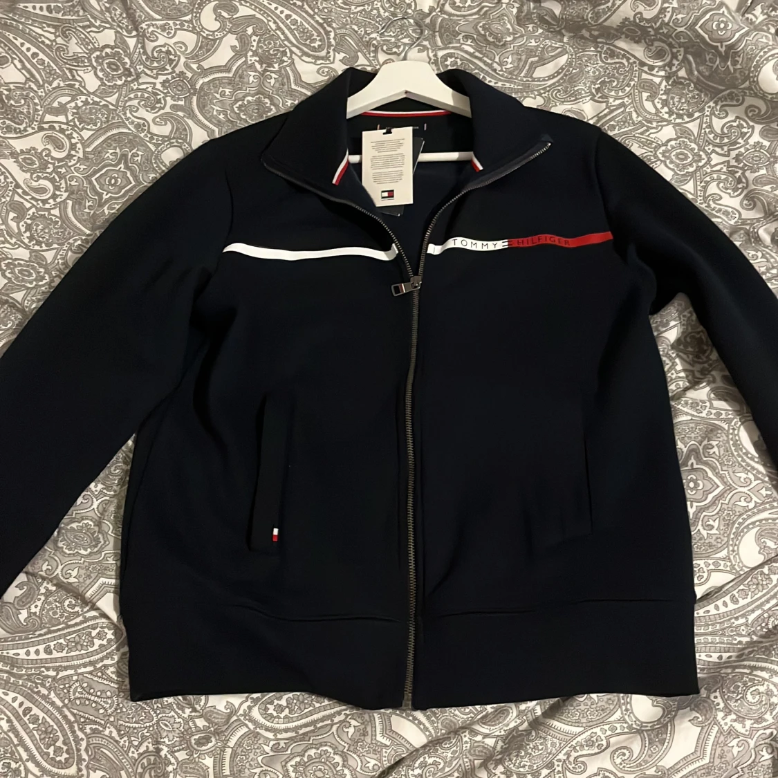 Ny Tommy hilfiger zip hoodie har bara testat den aldrig använd den har skönt matrial mörk blå lappen e kvar