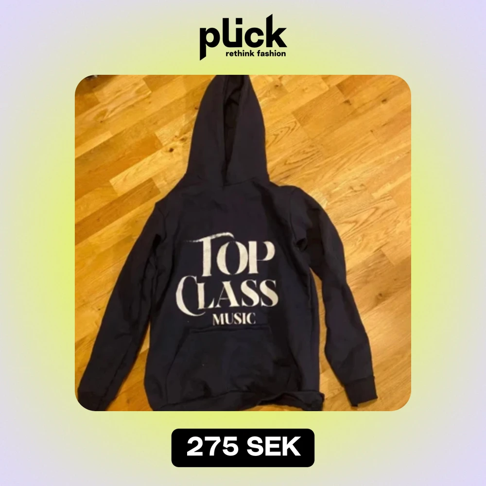 Fet Top Class Music hoodie. Använd 1 gång, jag insåg att det inte är min stil. Färgen är mörkblå och passar snyggt med ett par blåa jeans 💯