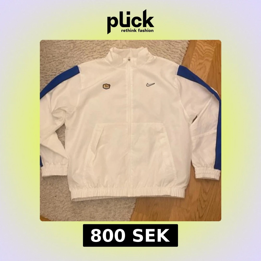 Snygg vit vindjacka/trackjacket från Nike med blå detaljer på ärmarna, perfekt condition kan ej se några tecken på användning