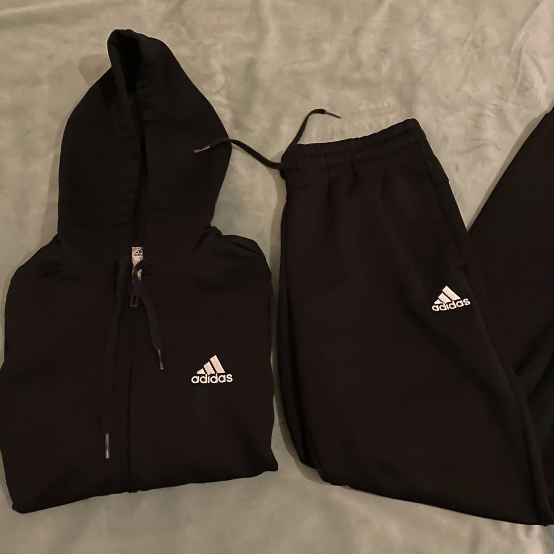 Helt nytt svart Adidas tracksuit set i storlek S. Köpt på adidas hemsida för 799 men säljer för 300 kr.