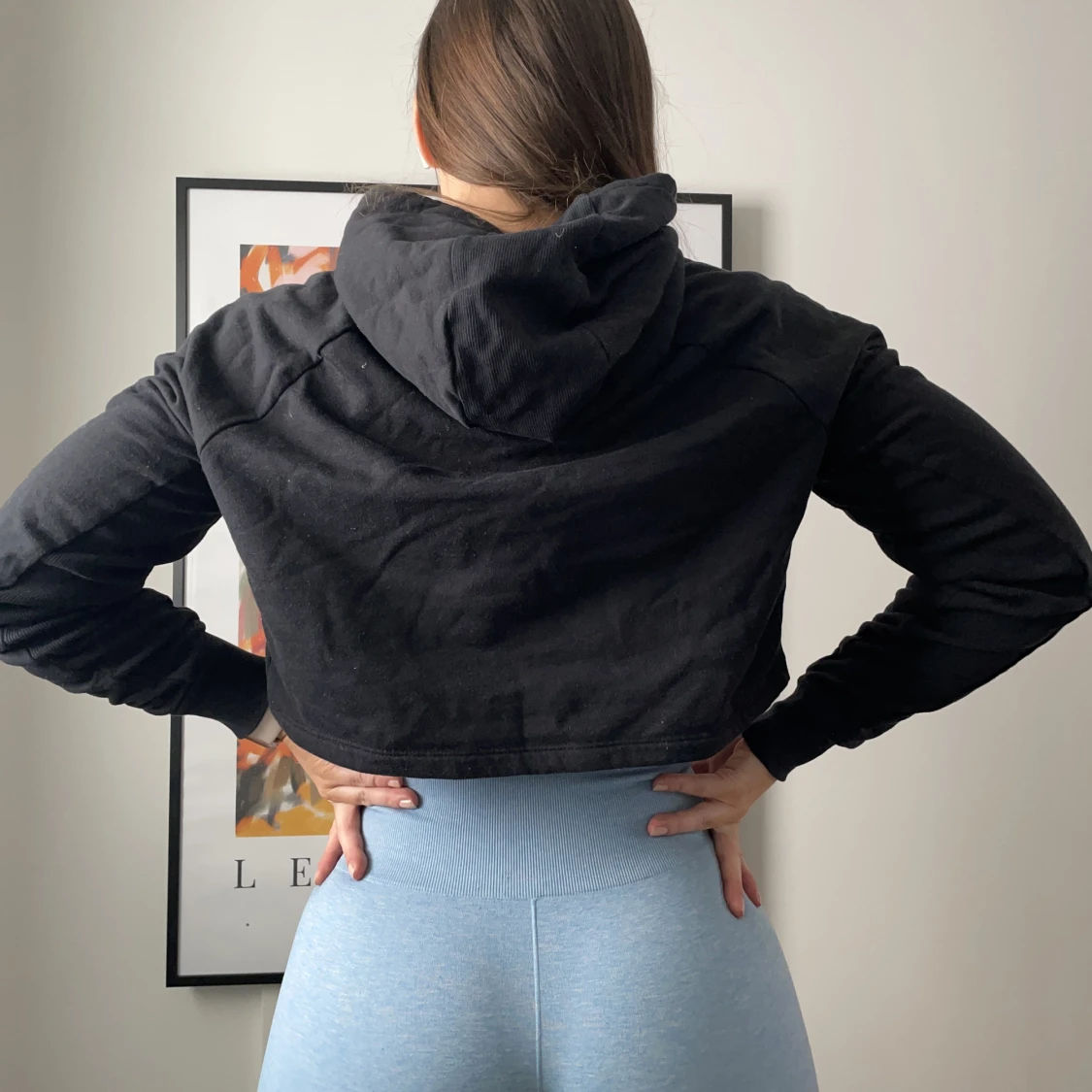 Gymshark training cropped hoodie i färgen black. Äldre modell, sparsamt använd, storlek M. Liten i storleken.