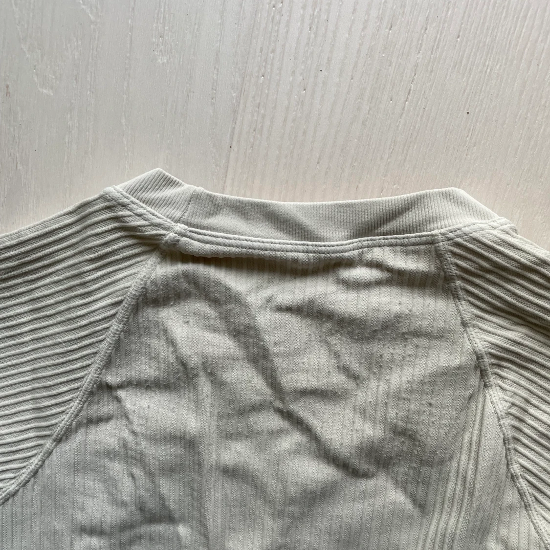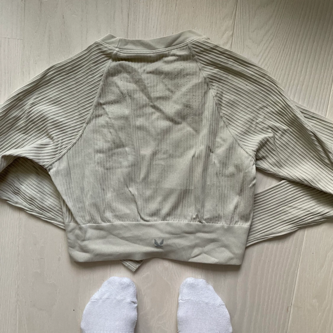 Min gamla älsklingströja!! Långärmad ribbad, mjuk och stretchig träningströja från soc. Den är lite tjockare och är i färgen beige/cream. I fint skick förutom uppe vid trapsen då den blivit nopprig pga skivstång.