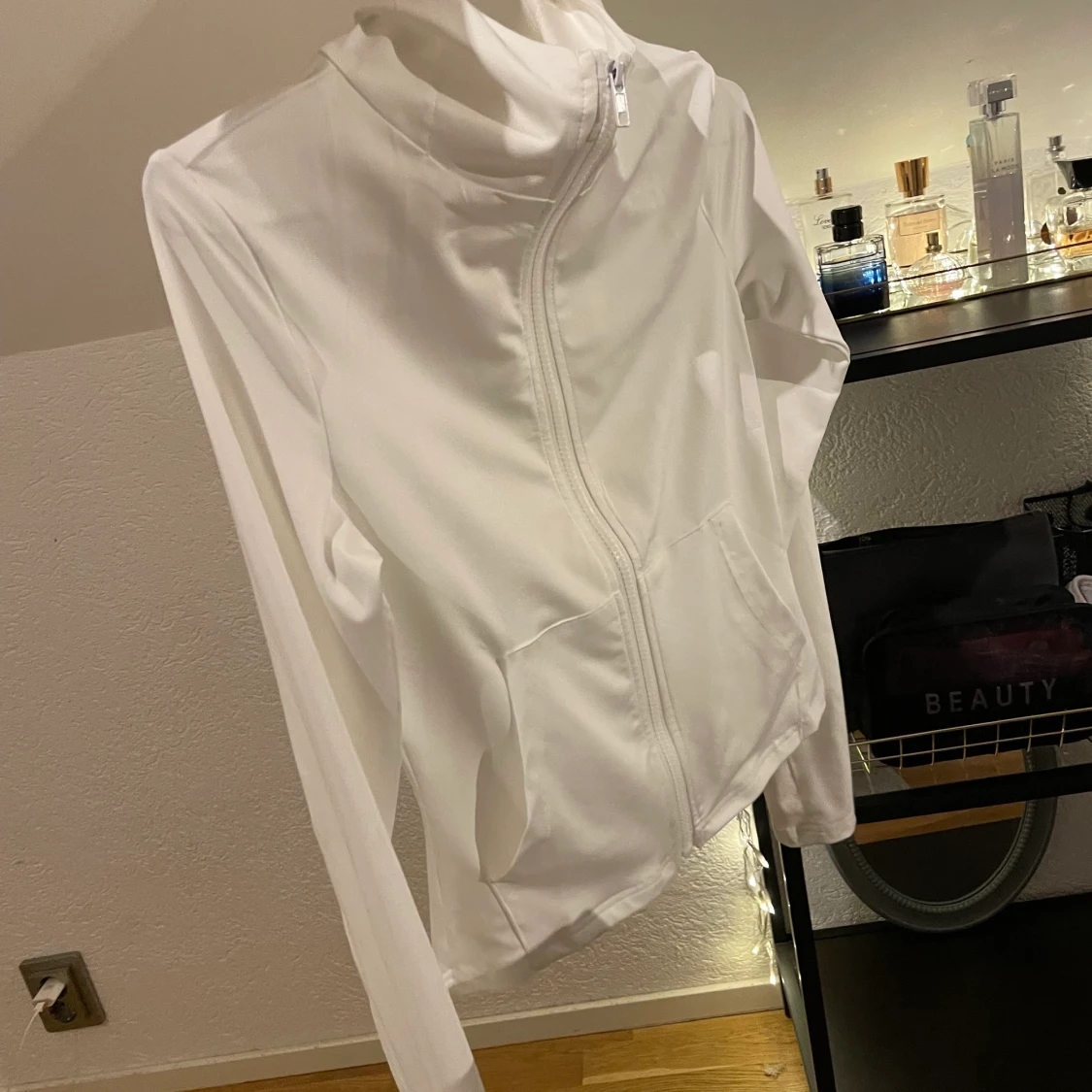 Kofta storlek s/xs. Väldigt strechigdärför passar de även M och figursittande. Perfekt för träning och i helt nytt skick.