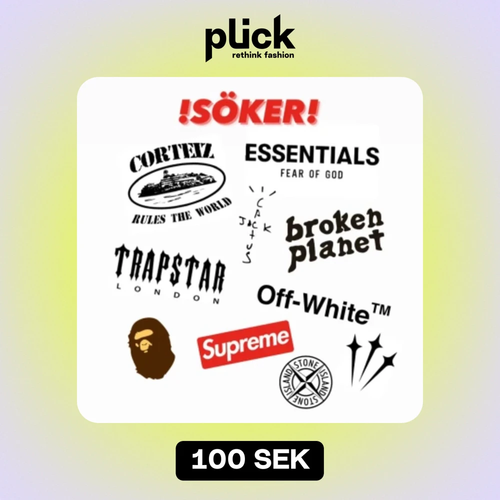 Tjena!, jag söker kläder och skor från dessa märken och linkande märken men främst dessa! Corteiz, Trapstar, travis scott, off white, bape, Supreme, broken planet, Nocta, Fear of god, stone island